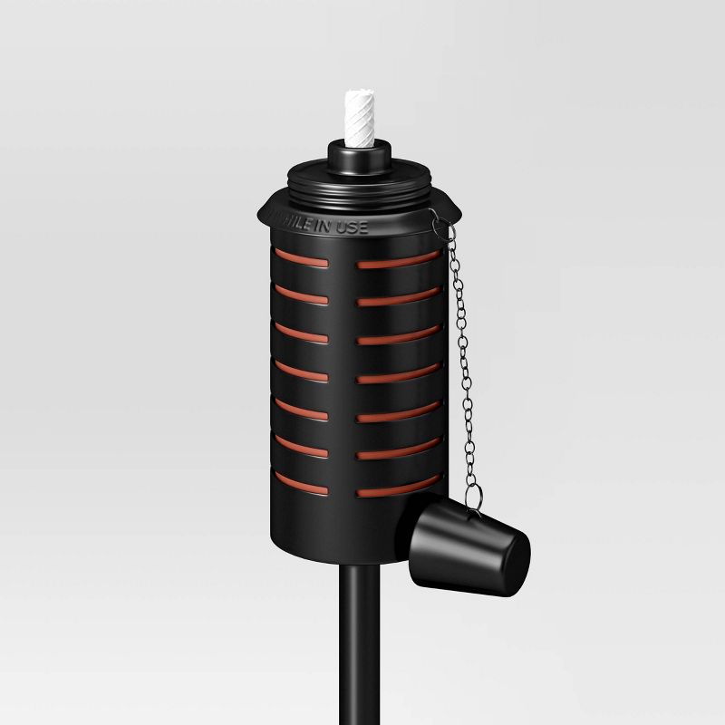 Easily enjoy entertaining or relaxing in your backyard with TIKI® Easy Install Torches. The easy install lever provides a simple, one-step installation. The clever torch design converts from a 65-inch full-size torch to a 50-inch mid-size garden torch, giving you the flexibility to add the pleasing glow of flickering light to any space in your backyard. Remove the metal pole completely, and it becomes an 7-inch centerpiece for your outdoor dining table or end table. The easy-to-use fuel canister features a wide mouth for fewer spills and less mess when refilling. These TIKI® Brand Horizon Metal Torches with Easy Install come complete with a flameguard, 4-piece pole with easy install lever, long-lasting wick and a metal snuffer to safely extinguish the flame. For proven mosquito repellency, use with TIKI® Brand BiteFighter® Torch Fuel, and enjoy up to 5 hours of burn time with each 12-ounce fill. TIKI® Brand BiteFighter® Torch Fuel sold separately. Torches sold as a 2 pack.
