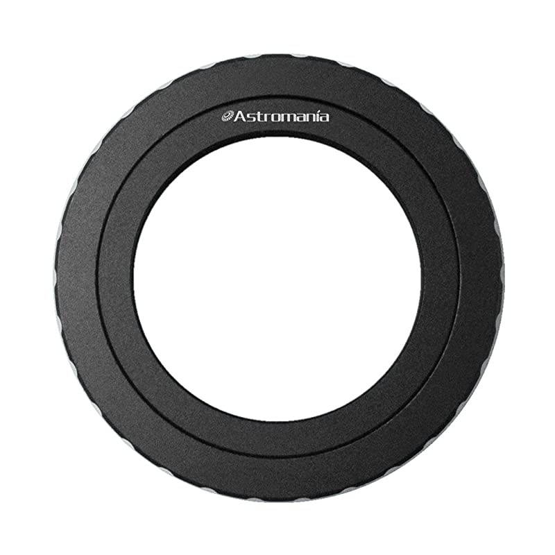 The T-ring for Canon EOS Cameras allows you to attach a Canon EOS 35mm DSLR or SLR camera to telescopes, camera adapters, and other astrophotography accessories equipped with standard T-threads. The bayonet-style attachment securely couples the Canon EOS camera body to the telescope, adapter, or accessory. A T-ring converts a camera's mount to a standard T-thread, and this model is designed to work with all Canon EOS format camera bodies. All camera adapters, including Orion, Celestron and Meade T-adapters and universal camera adapters, will fit the threads of this anodized aluminum T-ring.