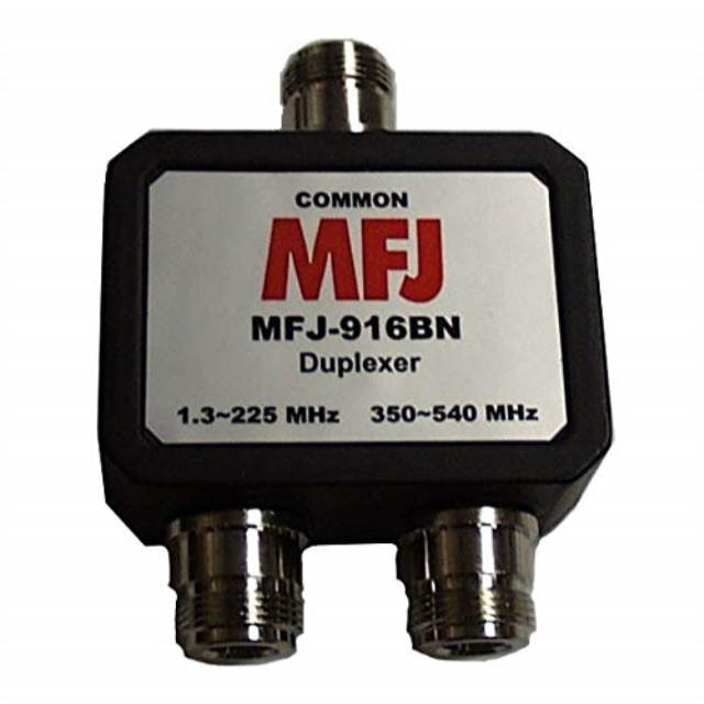 The MFJ-916BN duplexer is a series of inductance coils and capacitors that acts as a band-pass filter. Your MFJ duplexer can be used two different ways. The duplexer combines the output of the HF/VHF transceiver and the output of the UHF transceiver so that both transceivers can be connected to the same antenna. The duplexer can also be used to separate HF/VHF transmissions from UHF transmissions so that one transceiver can be connected to two antennas.