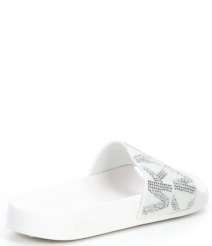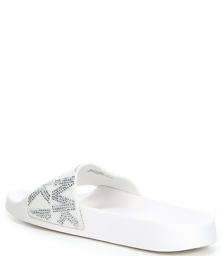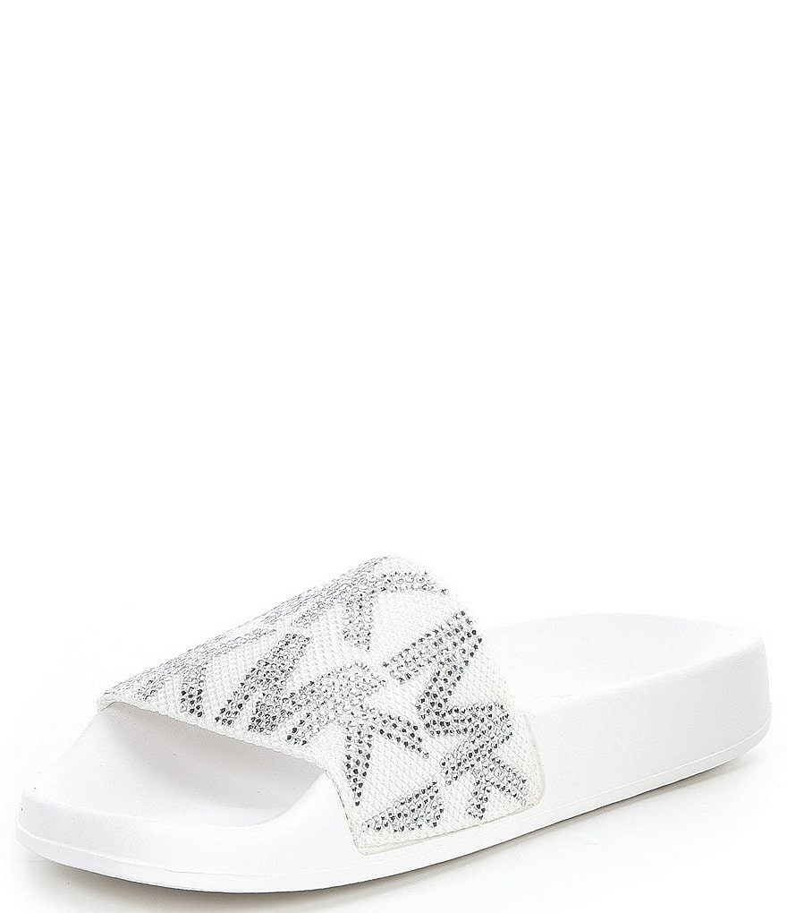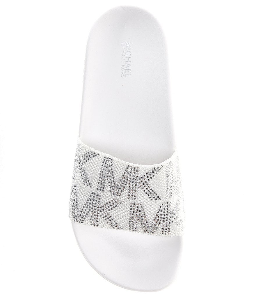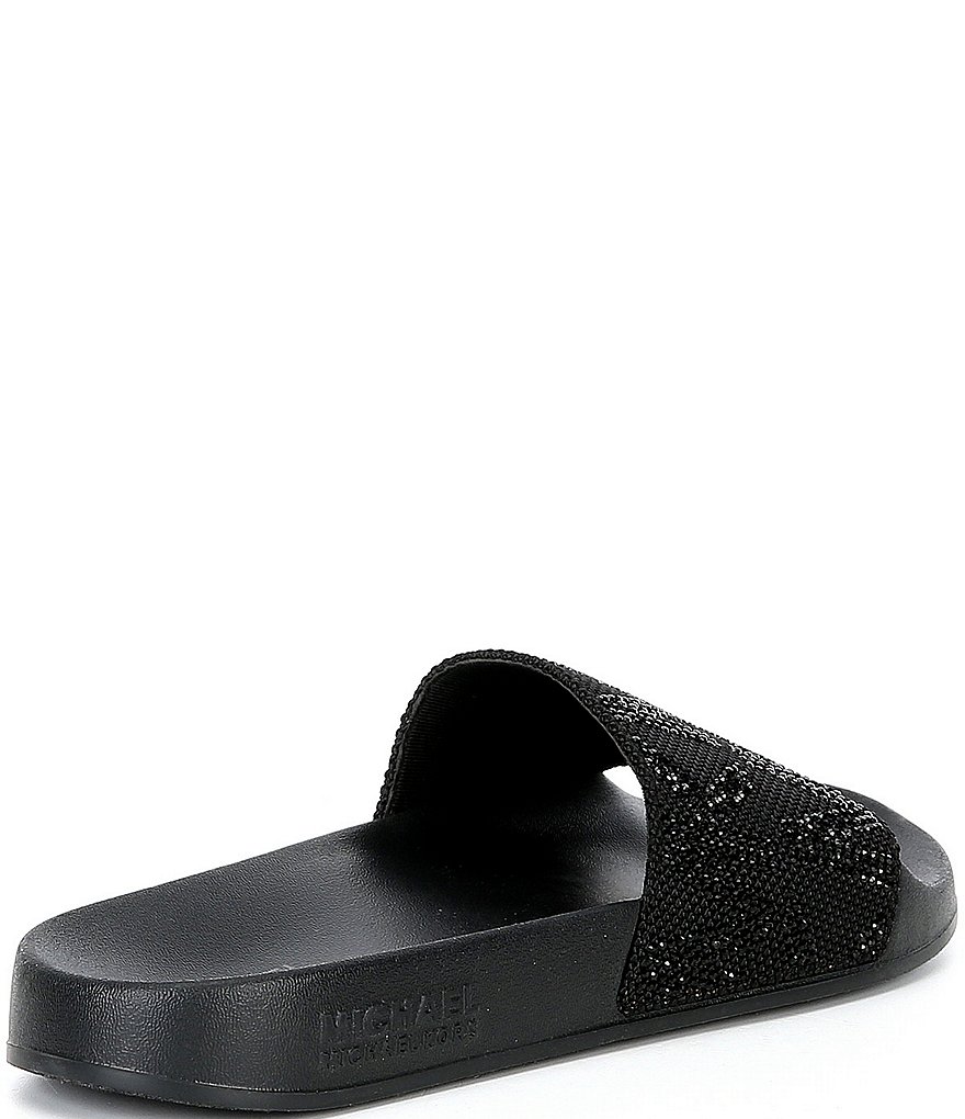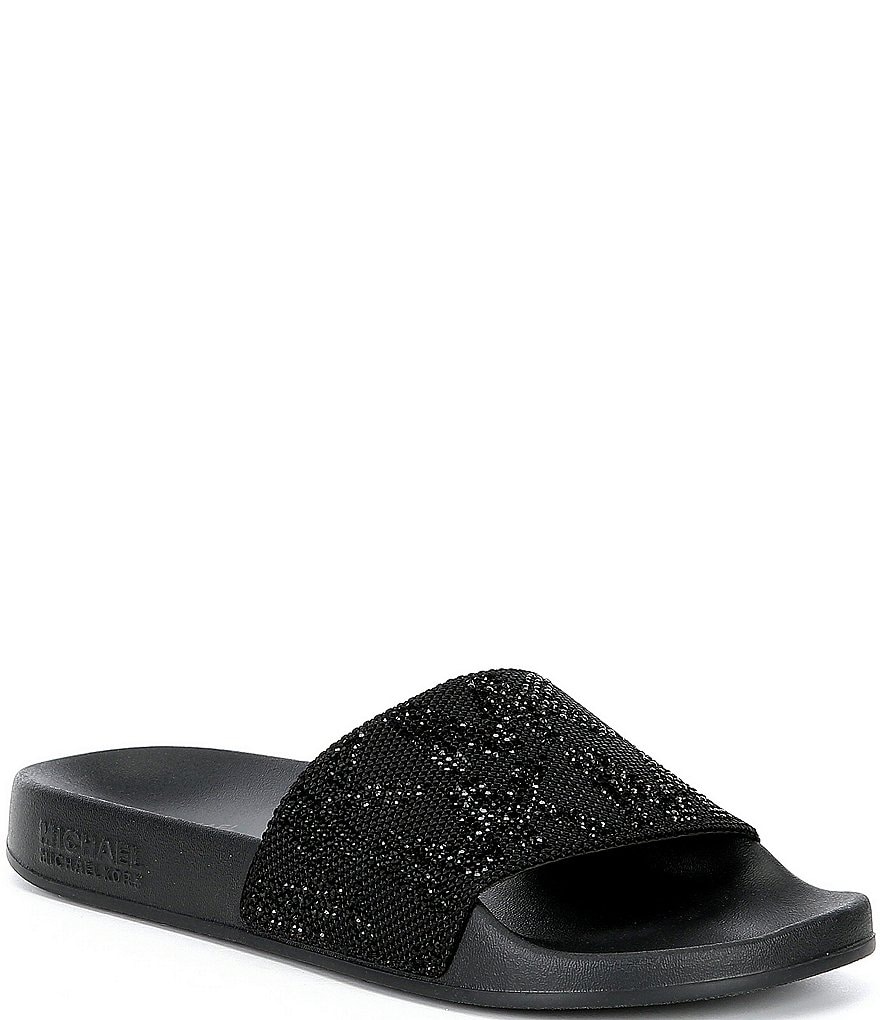 From MICHAEL Michael Kors, the Embellished Gilmore Slides feature: