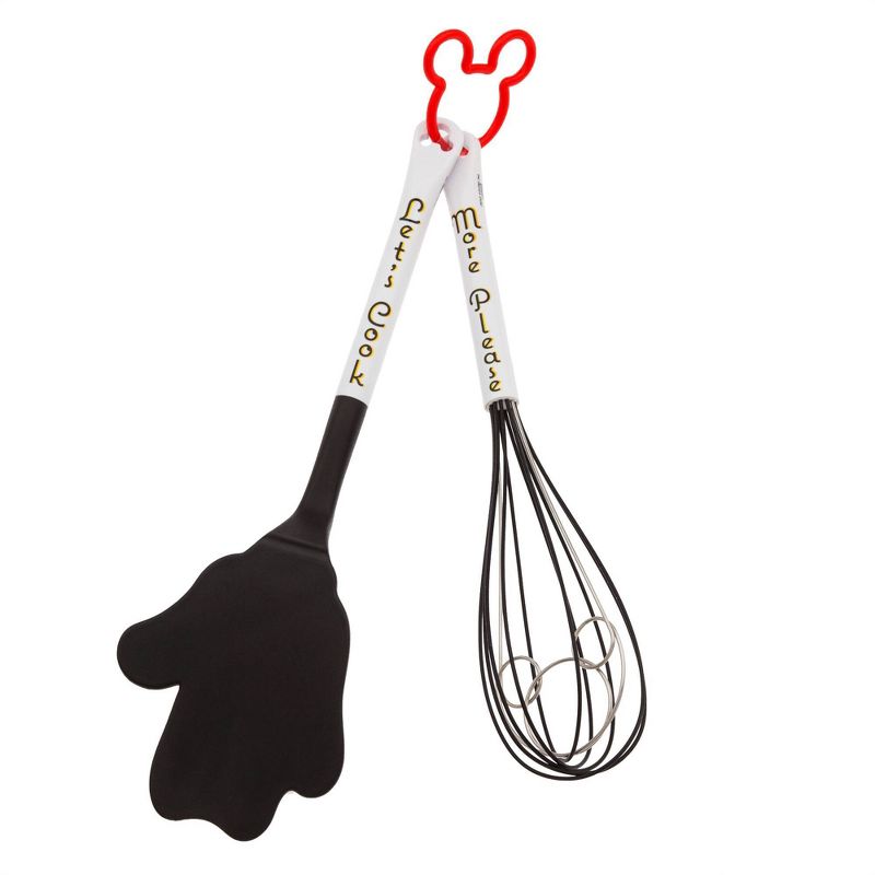 Cooking is always more fun with a friend! Disney Mickey Mouse is ready to lend a hand with this silicone spatula and he brings his iconic good taste to interior wires of the whisk. The two-piece set is part of our Disney Mickey & Friends Kitchen Collection and comes with a Mickey Mouse icon loop for storage.