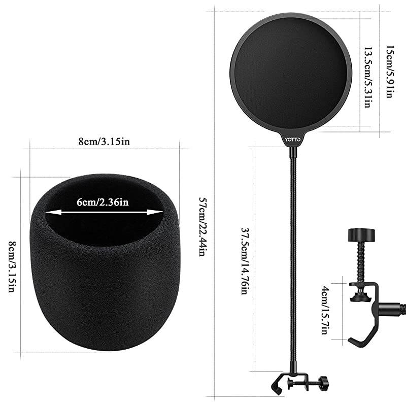 **********Note: The mic cover is designed for the Blue Yeti and Yeti Pro condenser microphone, the foam microphone covers was squeezed in a packing box, so please put it out for a little time then it will return to its original shape. *****2 Kinds in 1 Pack for Your Needs-aims to meet the needs of the majority of customers, so a new combination of the Mic Pop Filter and the Mic Cover Foam is specifically launched to reduce all unwanted breath and wind noise without affecting the sound quality caused by talking or singing, recording or broadcasting. *****Thick And SoftThe mic cover foam microphone windscreen is soft and thick, has good elasticity and shrinkage, convenient to set on the microphone. Better protect your microphone from wind interference and other noises even in strong wind condition. *****Reinforced Frame & Superior Material-The Pop Filter is featured with a brand new and more fixed frame providing you a super seamless body and perfectly avoid the filter's any falling off or