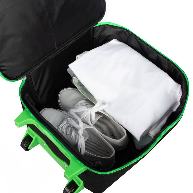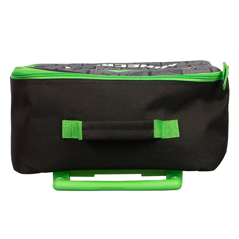 This Minecraft roller travel bag displays your favorite Creeper and comes with a zipper closure to secure everything inside. Take the load off your back with the extendable handle and built in wheels. Easy to wipe clean. The durable polyester and high quality aluminum handle makes this piece of luggage a long lasting travel necessity.