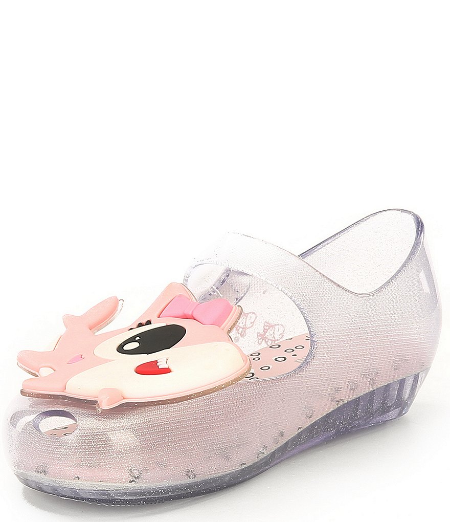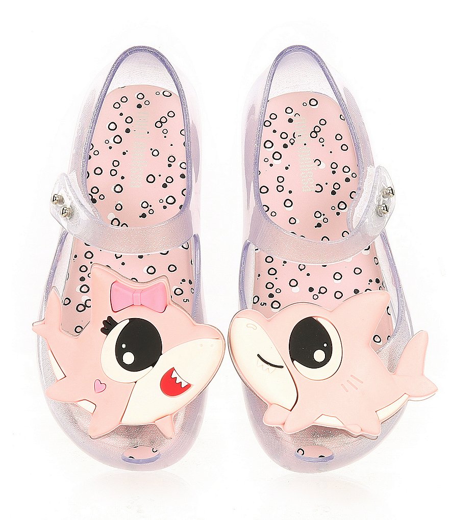 From Mini Melissa, the Girls' Ultragirl Shark Mary Janes feature: