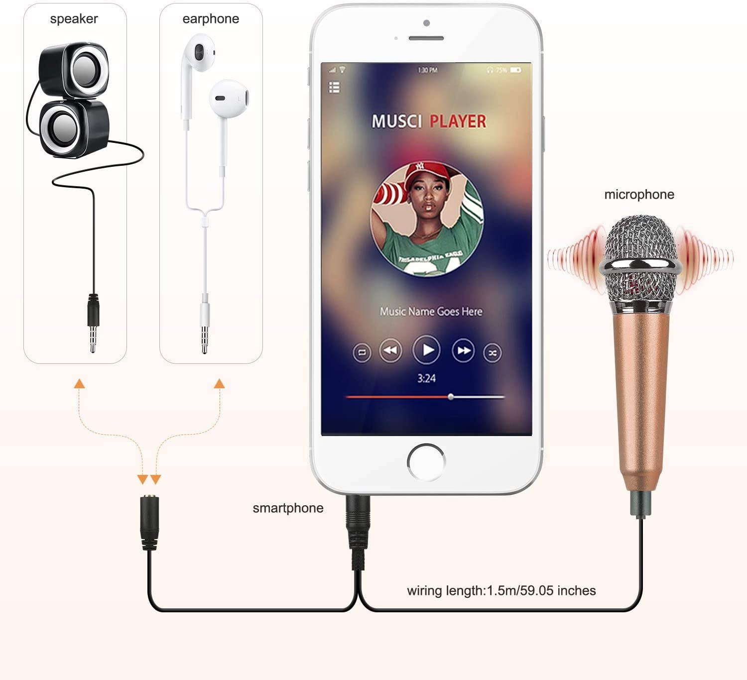 Only for Apple phones support the monitoring function (ie singing and hearing your voice), for Android phones can only record and play to hear their voices. For computers, notebooks use microphones as a talking tool for video chat with friends. If you want to play karaoke and other software, we recommend that you install a separate sound card after use. Do not charge your phone when using the microphone, otherwise there will be a sound. If the recorded song sounds small or has a slight click, because the cable is not connected properly, please check the controller connection.