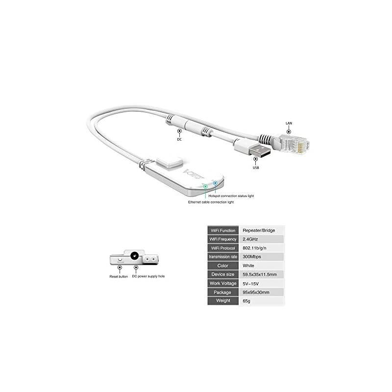 Feature: 1)Traditional intelligent WiFi Bridge, together with WiFi repeater function 2)WiFi intelligent bridge mode, it supports WiFi hotspot scan automatically and WiFi hotspot memory function 3)The best partner of STB, IPTV, Sky Box, X-BOX, IP camera and SLR camera 4)Support local WEB management, Chinese and English configuration interface 5)Adopt the original creation D/A temperature compensated auto frequency control technologyTAFC, make sure the lasting stability to ensure that the WiFi signal is not dropped 6)Original creation VDNS virtual domain configuration technology to solve the users trouble of configuration 7)Support WPA-PSK/WPA2-PSK64/128/WEP security mechanism 8)Support 802.11 n WiFi transmission protocol, 300Mbps rate of transmission 9)The transmission distance (without obstacle): 100m 10)Wide voltage (DC5V-15V), Low power consumption ( <2W ), no need special power supply, can reduce electronic waste generated Package Included 1 * Mini WiFi Bridge & Repeater 1 * User Manual