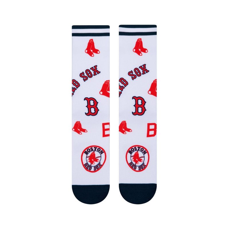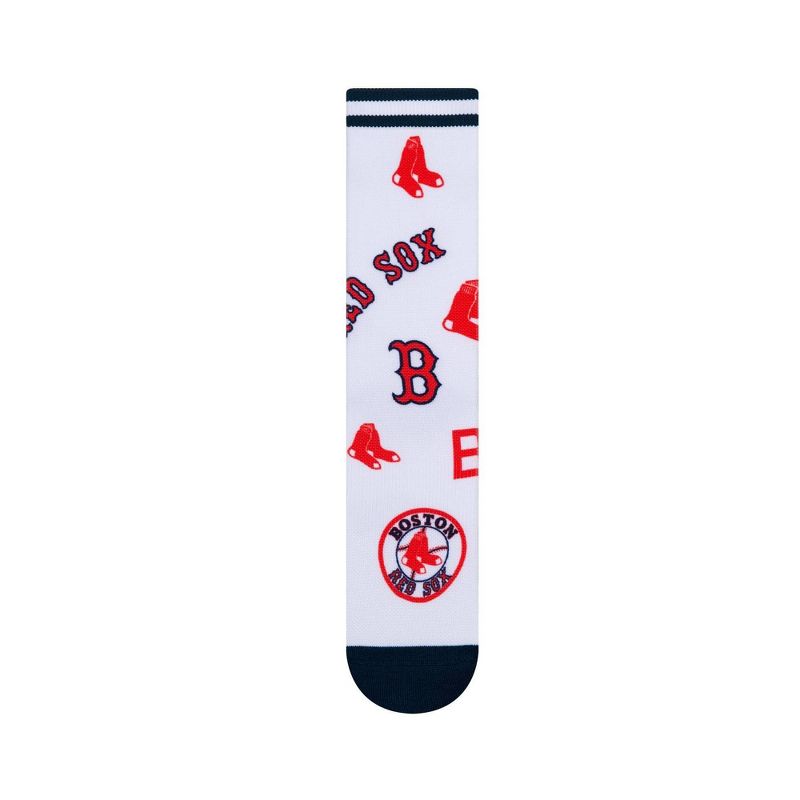 The Boston Red Sox Mixed Up Crew officially Licensed MLB Team Logo Socks are the ultimate fan accessory. Athletic Knit for a classic look, with cartneared arch support and reinforced cushioning in the heel and toe. Printed via Pkwy’s proprietary “360Print” Direct-To-Garment printing process, your design will not stretch and does not show seams in the seamless print. Made from SweatTECH blended yarns, you'll feel cool and more comfortable in all weather conditions. DualKNIT construction improves durability, giving you years of supporting your favorite team. Size L - IdealFIT sizing for men's shoe sizes 6-12.