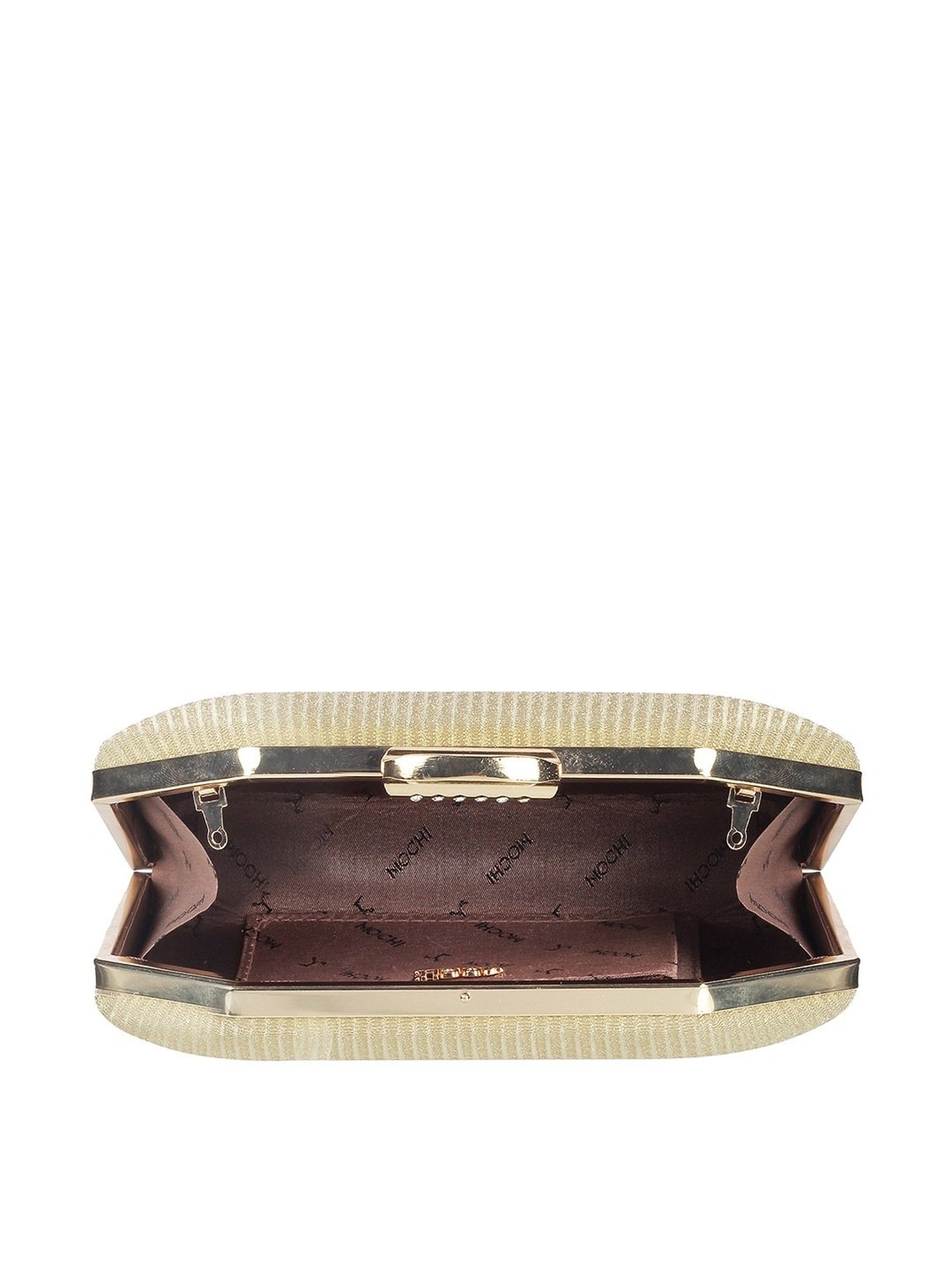 A unique combination of being stylish and practical, this women's clutch from Mochi ticks off two trends at once. It is fashioned clutch from premium quality synthetic and is sure to last for a long time. This clutch with a solid pattern flaunts spacious compartments that can accommodate your valuables easily. This gold clutch comes with a clasp closure that makes sure your essentials are safe and secure.