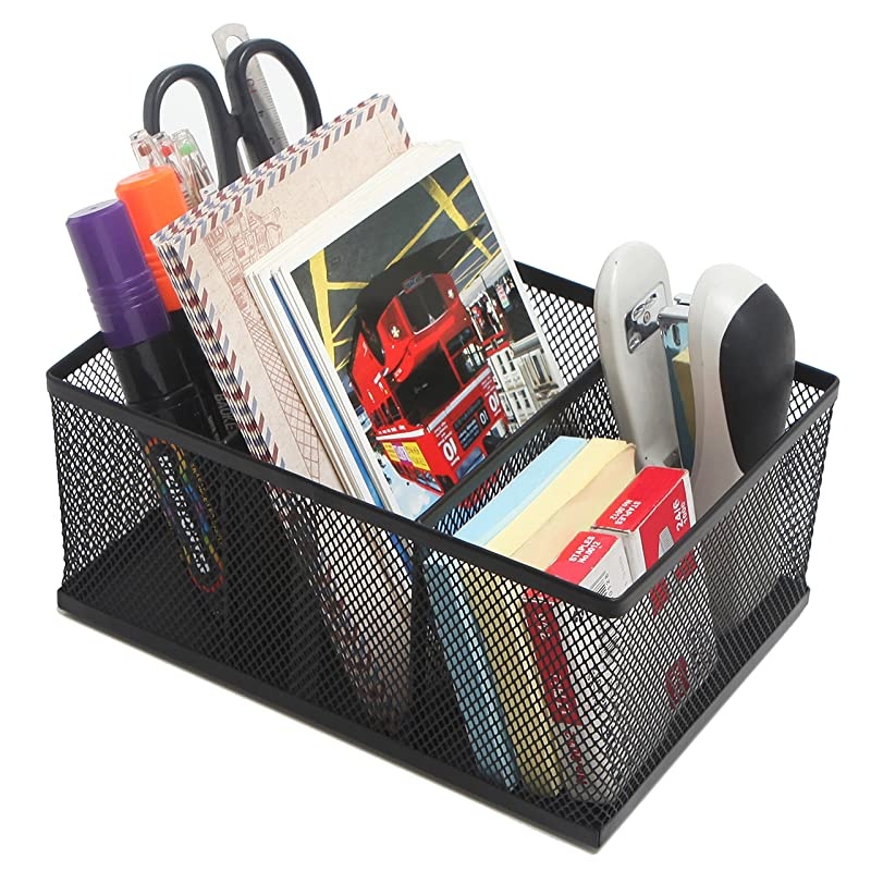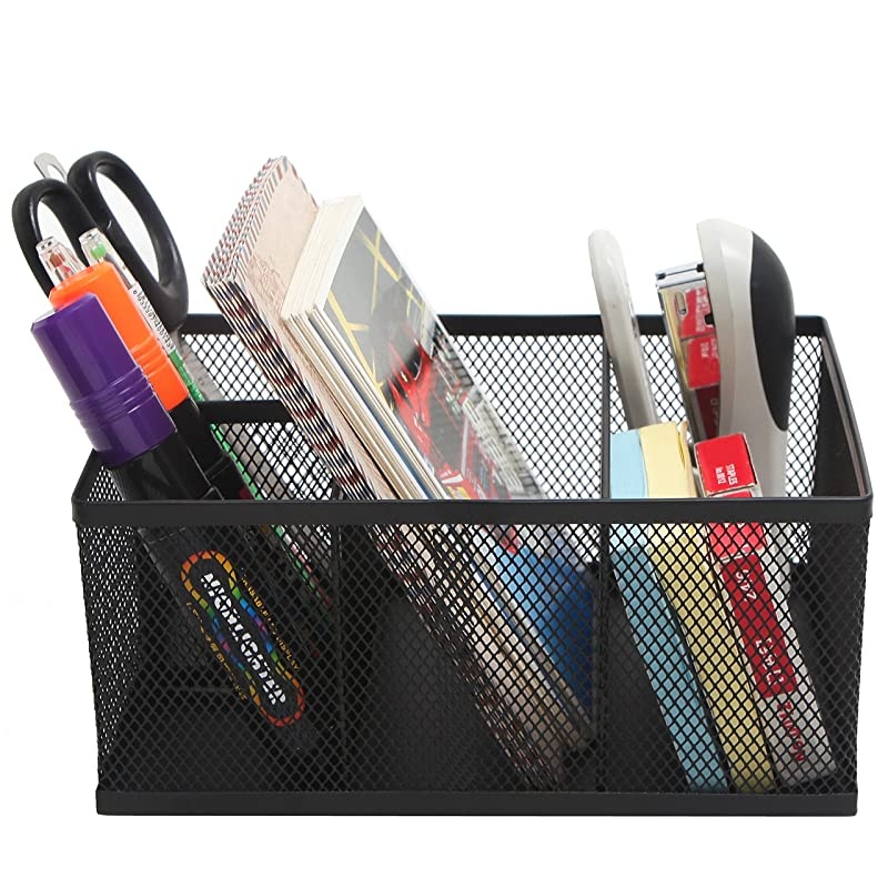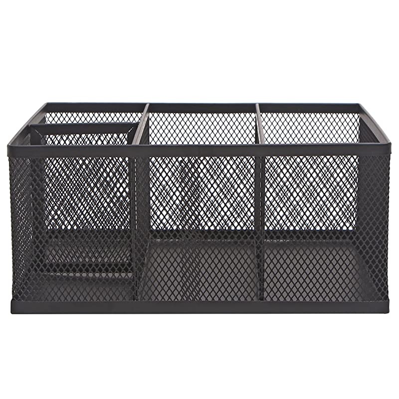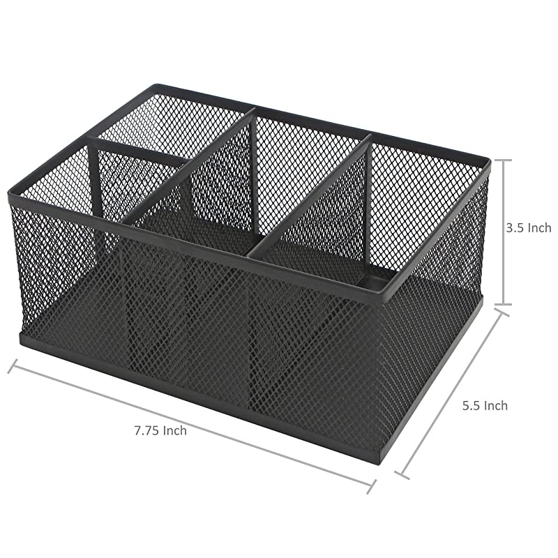 Color: Set of 2Avoid the clutter of small items on yout desk, counter, or vanity with this simple and versatile metal mesh organizer caddy. Featuring two large and two small compartments, this convenient rectangular bin can hold pens, markers, scissors and brushes, as well as postcards, letters, memo pads. Not only is this office supplies organizer great for your workspace, it can even be used to store cosmetics, makeup, nail polish, media remote controls and so much more. The mesh construction gives it a clean look to complement a variety of decors at home and work settings. **Official product.