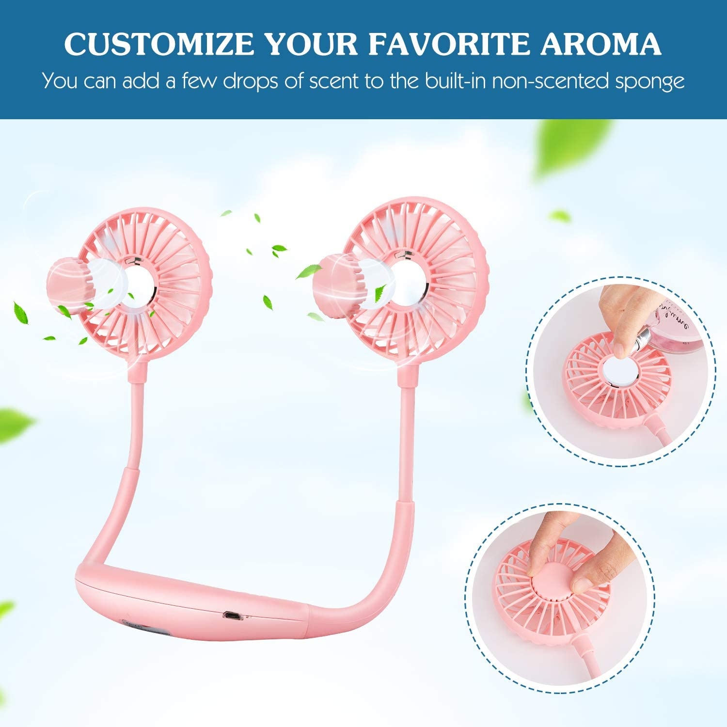◊ Aromatherapy Fan: With 2 aromatherapy boxes and we provide 2 odorless aromatherapy for you, you can add your favorite perfume or anti-mosquito oil in them. Just enjoy the powerful wind and fragrant!