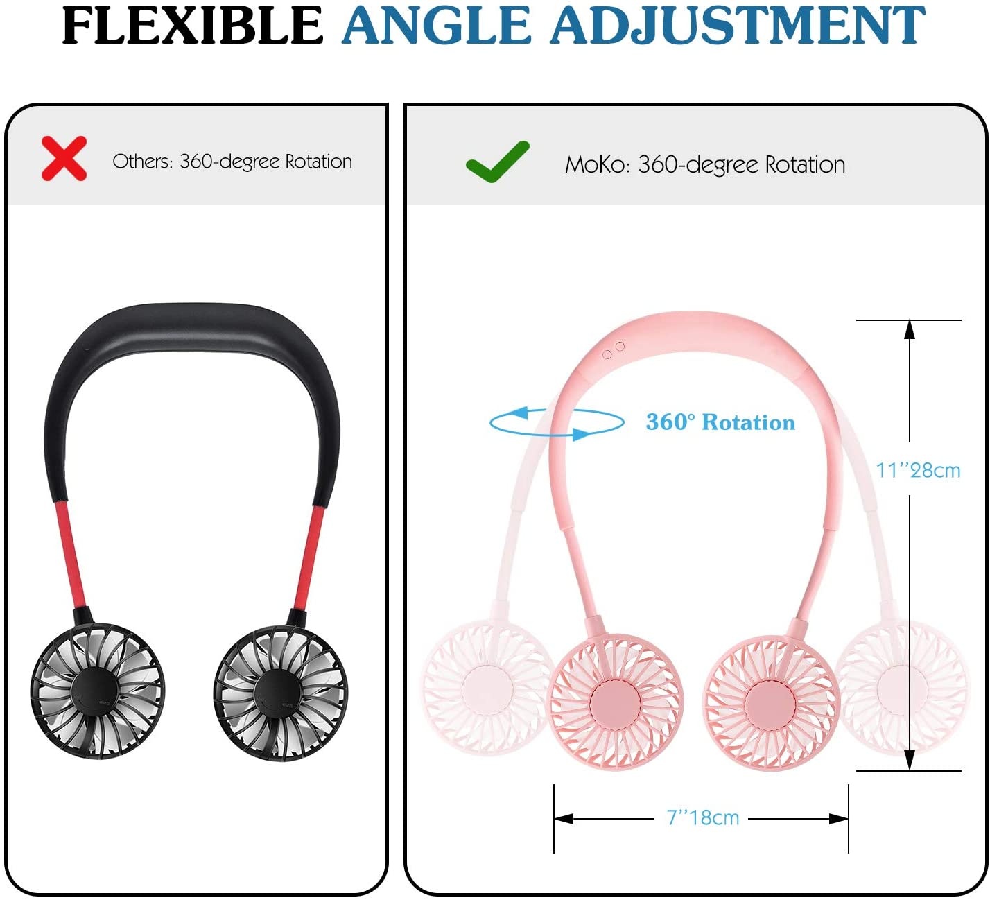 3 level of wind speed can be adjusted & 2 flexible wind head, cool all summer.
