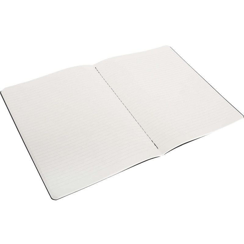 Moleskine Cahier Cardboard Journal, 7.5W x. These extra-large, lightweight and highly flexible journals add a natural, handcrafted feel to your writing. Black, flexible, heavy-duty cardboard cover features visible stitching on the spine and rounded corners. Contains 120 extra-large narrow ruled 7.5"W x 9.75"H pages. Dimensions: 7.5"W x 9.75"H. The last 16 sheets are detachable and there is a pocket for loose notes. Sold As 3/Pack.