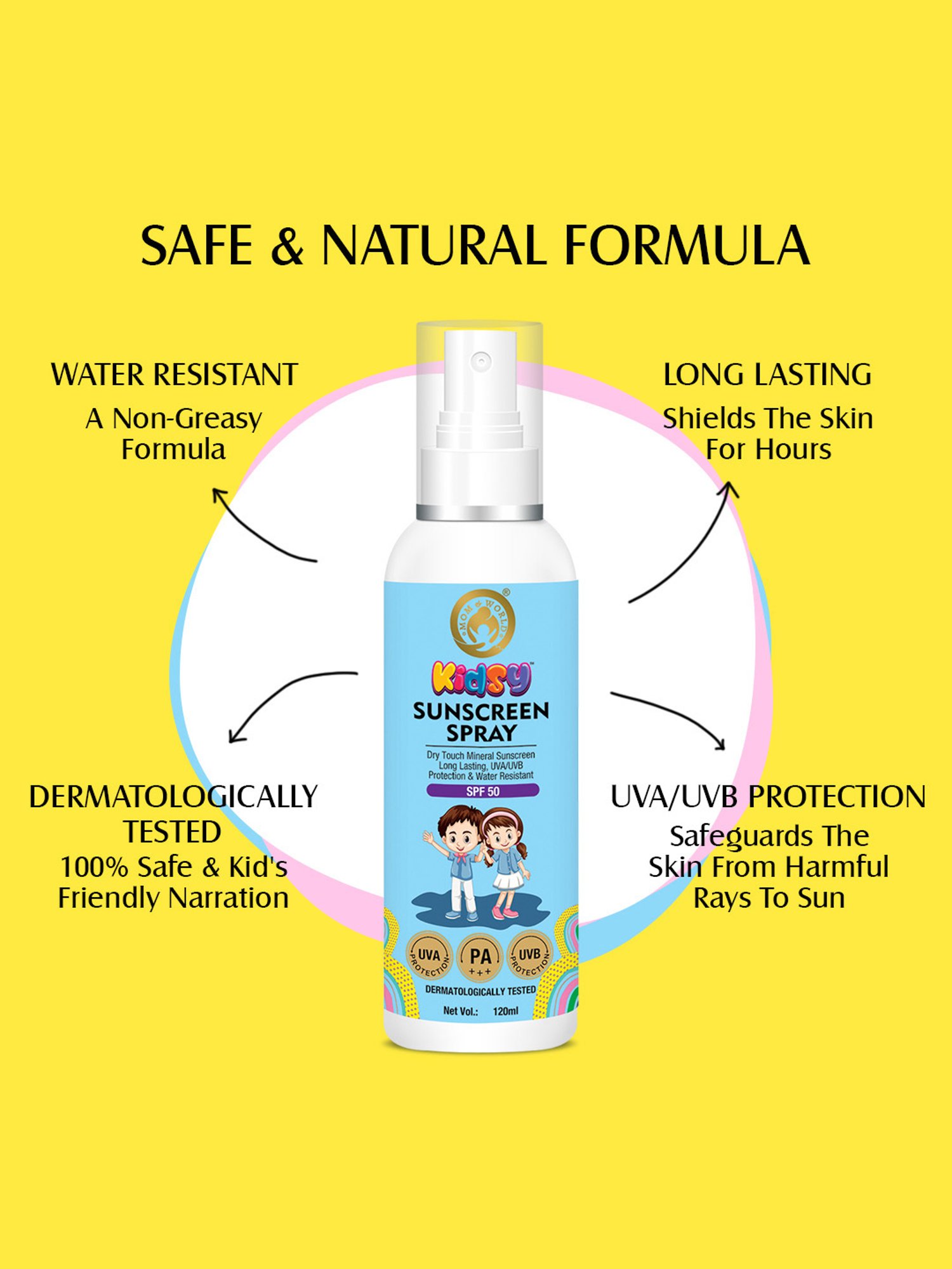 This sunscreen spray is formulated to protect the tender skin of children from sunburn and tanning. To prevent the harmful activities of free radicals and preserve the supple texture of the delicate skin, it is crafted with sunscreen agents that are proven to be safe. This mineral-based sunscreen is gentle and safe for delicate skin. The physical sunscreen agents, titanium dioxide and zinc oxide works as powerful UV ray blockers but are mild on the skin. To preserve the supple smooth texture of the young skin, multiple fruit, flower and leaf extracts are blended in the sunscreen.