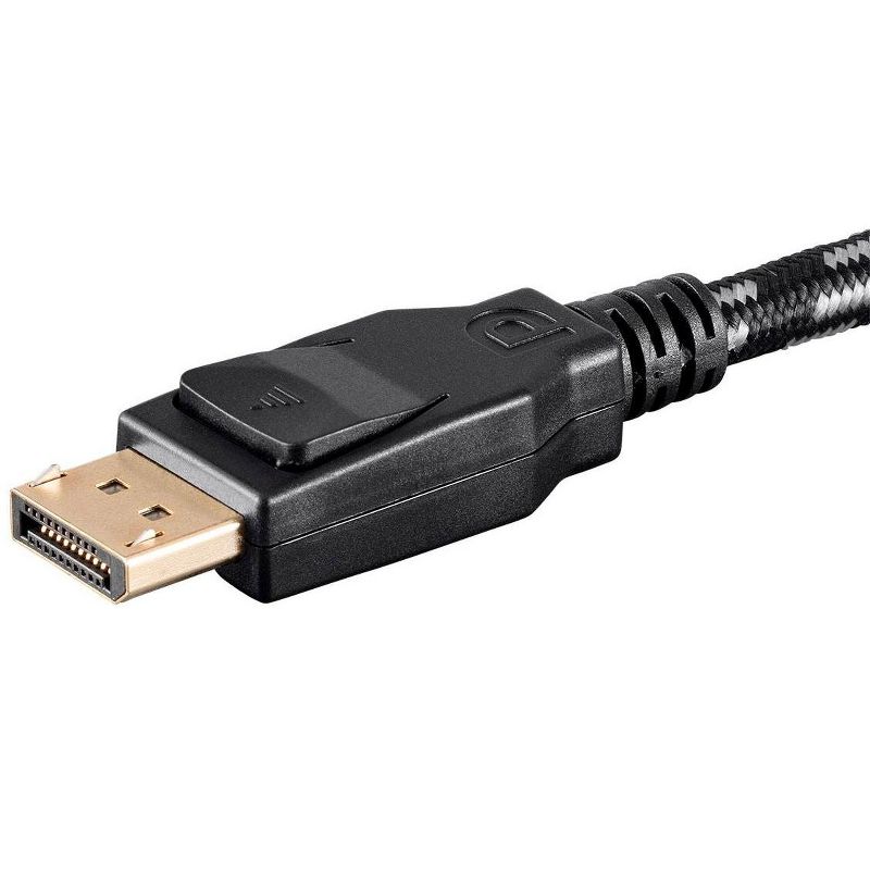 Monoprice Braided DisplayPort 1.4 Cables are compatible with the newest DisplayPort 1.4 specification. With DisplayPort 1.4, you can connect your Displayport equipped ultra-high performance gaming PC or workstation to a high resolution monitor. This cable features support for High Bit Rate 3 (HBR3), Display Stream Compression 1.2 (DSC), Forward Error Correction, and up to 32 Inline Audio Channels. It is fully compatible with older DisplayPort standards and includes the standard DisplayPort connector locks, which helps prevent unwanted disconnects and provides long lasting connectivity.
