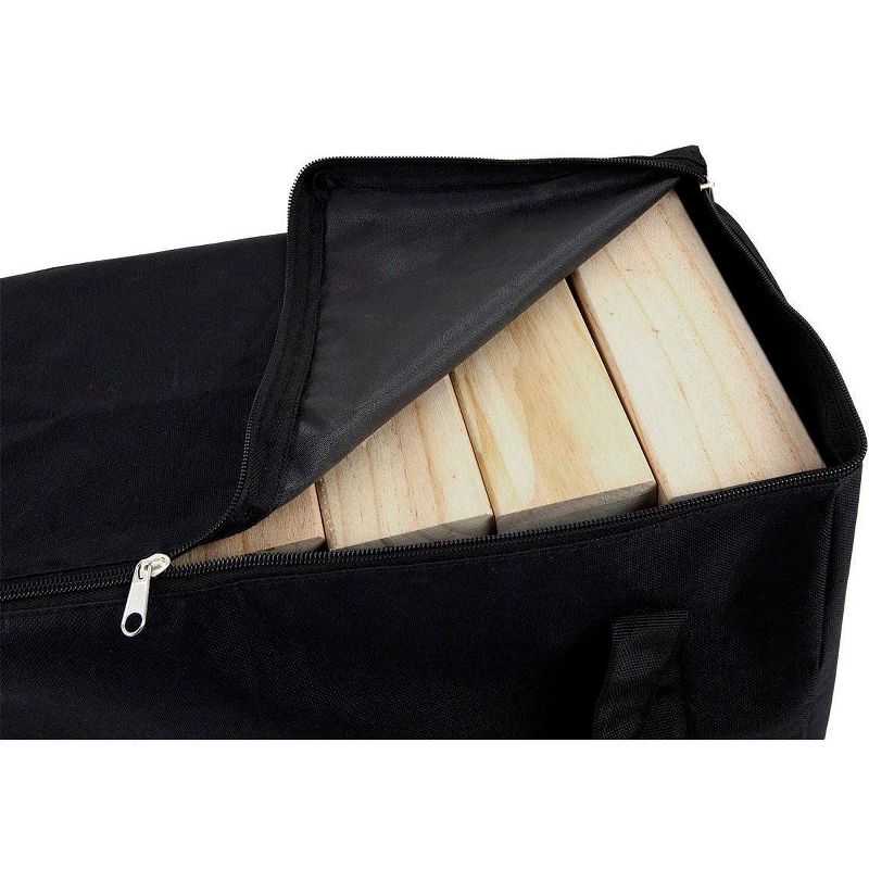 Who said adults can't play games? Giant lawn games are here for all to play! Be the life of the party with this Giant Tumbling Tower. It is perfect for tailgating, BBQs, camping, outdoor events, and much more! The Pure Outdoor Giant Tumbling Tower comes with fifty-six 7.5" x 2.5" x 1.5" timbers, with 2 extra blocks provided for the bottom row for added height. It also comes with a carrying case for easy portability. The game starts with 19 levels of timbers 2.5 feet tall, but can grow to over 5 feet in height while playing! Have yourself a literal Block Party!