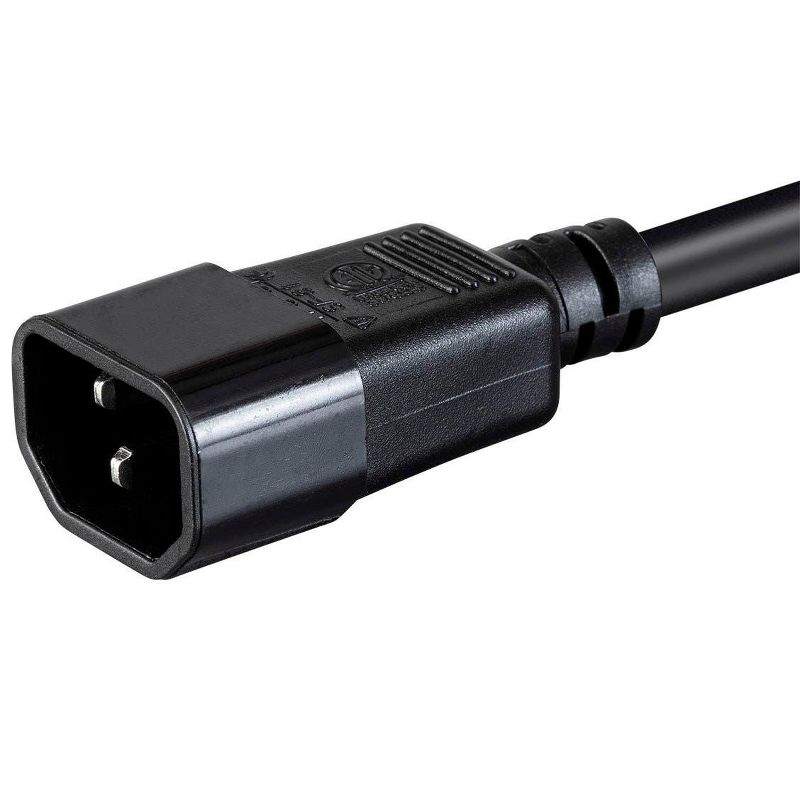 • This Monoprice heavy-duty extension cord connects network hardware with C15 power connections, such as servers, to power distribution units and UPS systems with C14 type inputs.