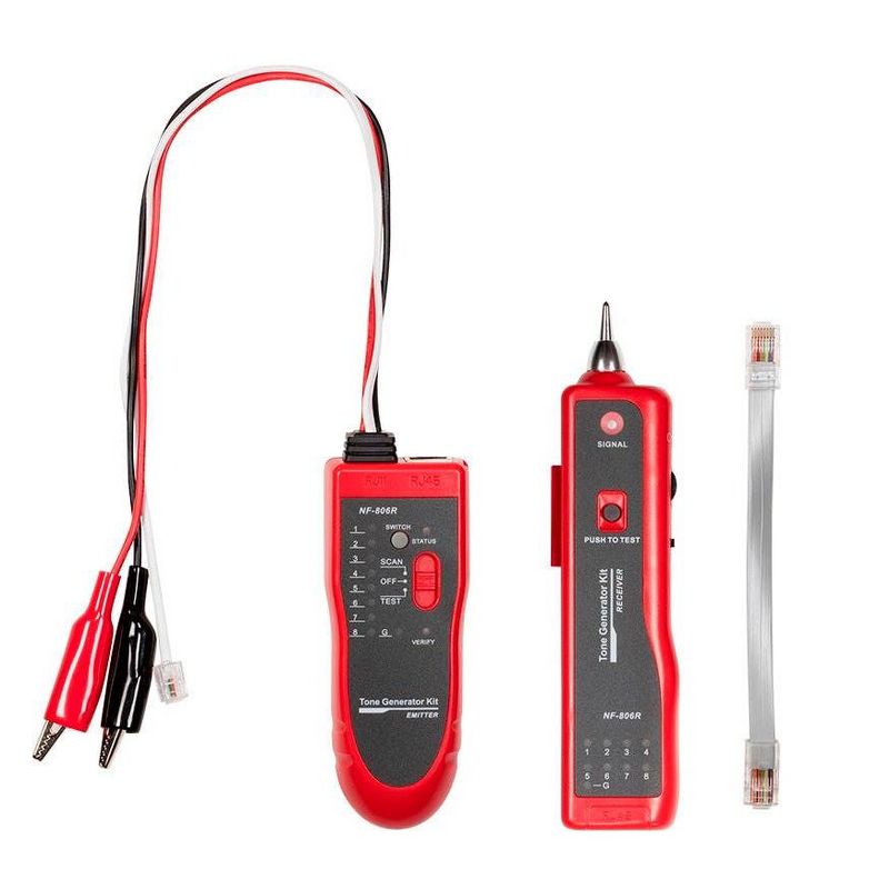 • The Tone Generator with Probe Kit specifications are: Tone Frequency: 1kHz | Maximum Transmission Distance: Up to 2 kilometers | Maximum Operating Current: Less than 10mA | Tone Modes: 2 tones | Compatible Connectors: RJ45, cable clip with RJ11 connector