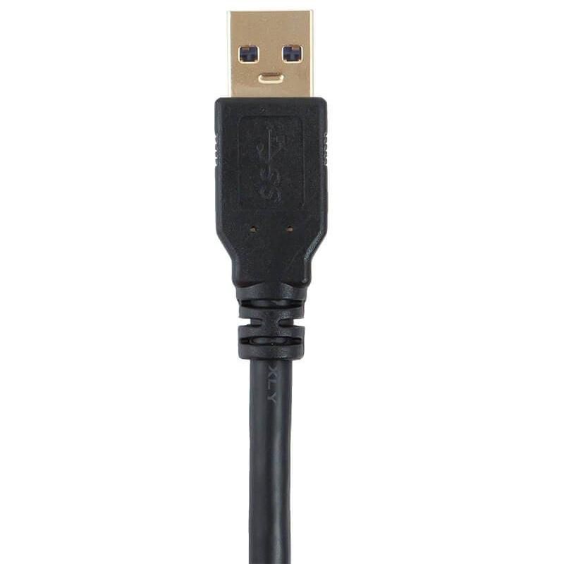 • This cable features a USB 3.0 A male connector on one end and a USB 3.0 B female connector on the other end.