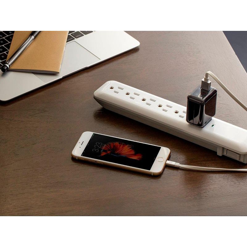 • Its portable dimensions also helps with outlet port clearance by not blocking other charging ports on a wall or power strip outlet.