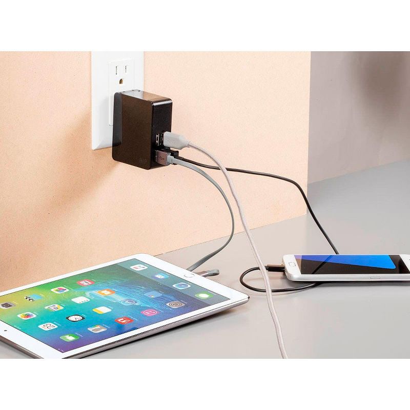 Keep all your mobile devices fully charged at home, in the office, or on the road with this 4-port USB Wall Charger. Each of the four ports is capable of delivering 2.4 amps / 12 watts of charging power, with a total maximum of 5.0 amps / 25 watts of charging power, enough for full speed charging of power hungry devices, such as the Apple iPad.