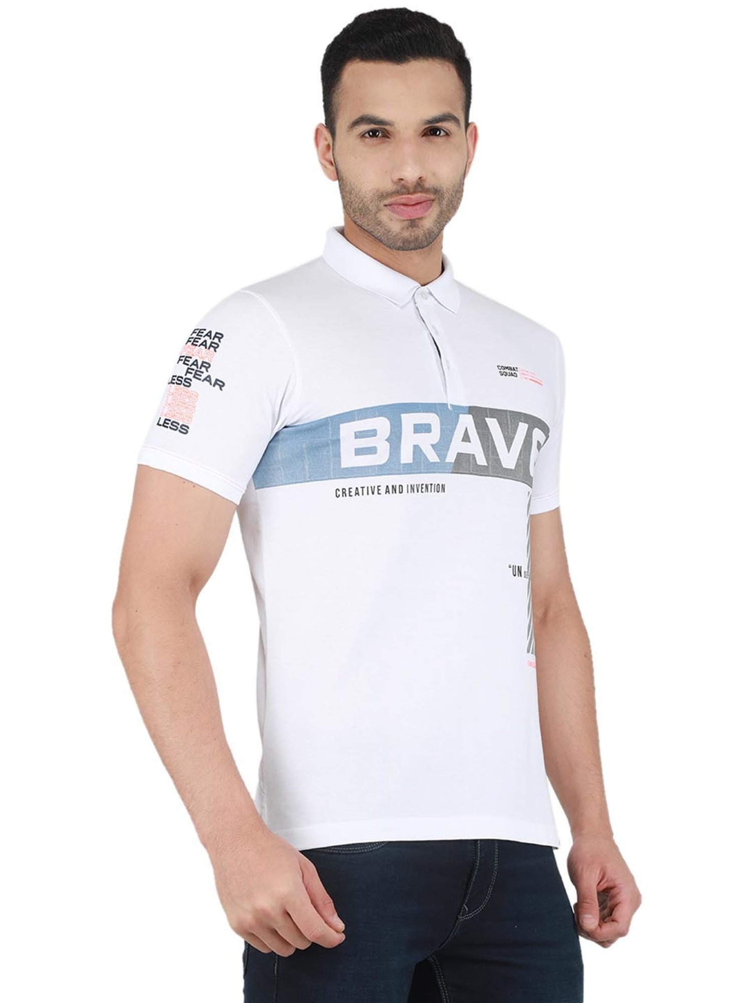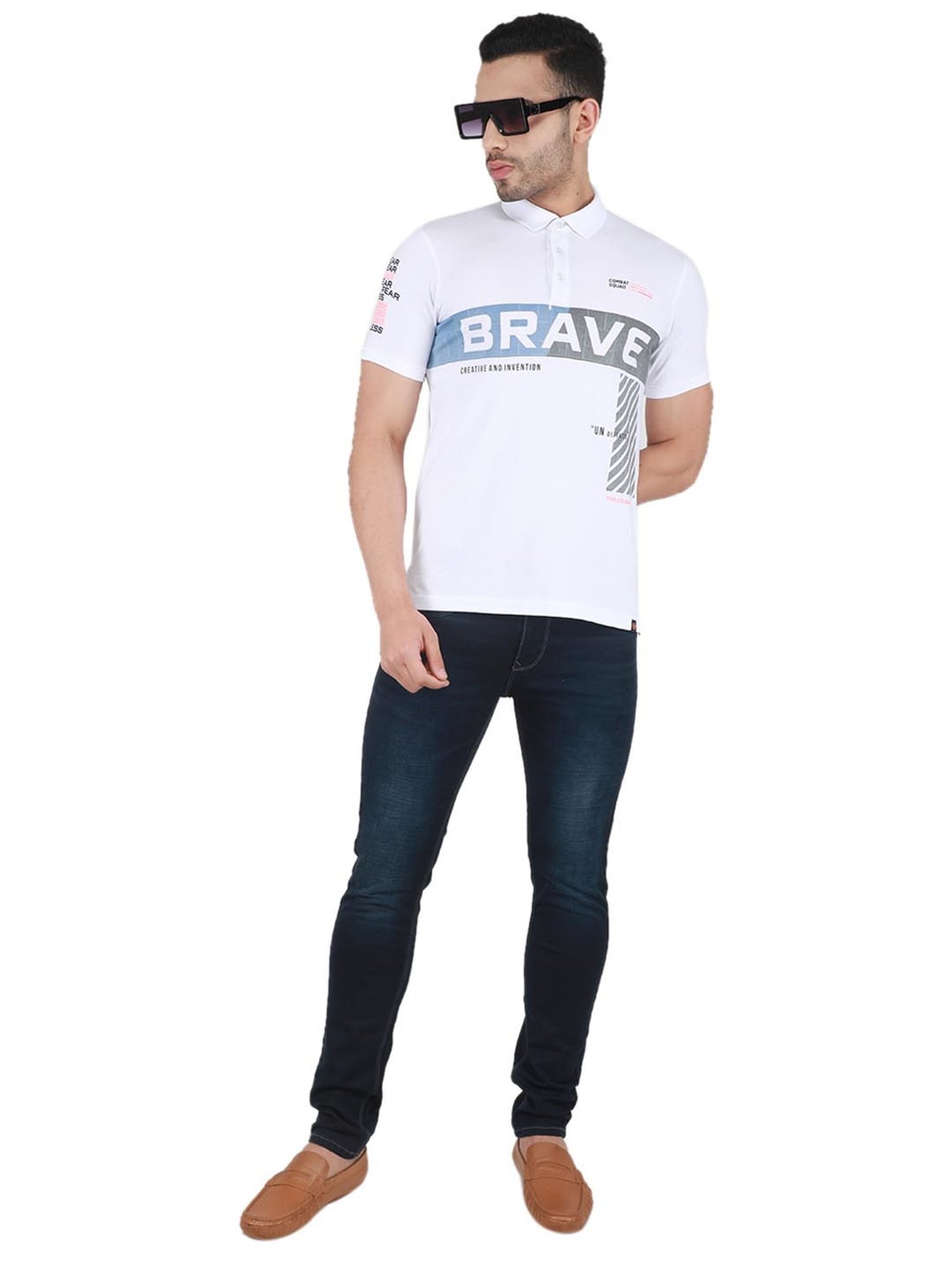 Showcasing a modish appeal, this white regular fit polo t-shirt from Monte Carlo is sure to make a style statement. Tailored to sartorial perfection from premium quality fabric, it assures a soft and soothing touch against the skin. Exuding short sleeves, it is sure to fetch you compliments from all. The printed pattern makes it a captivating choice.
