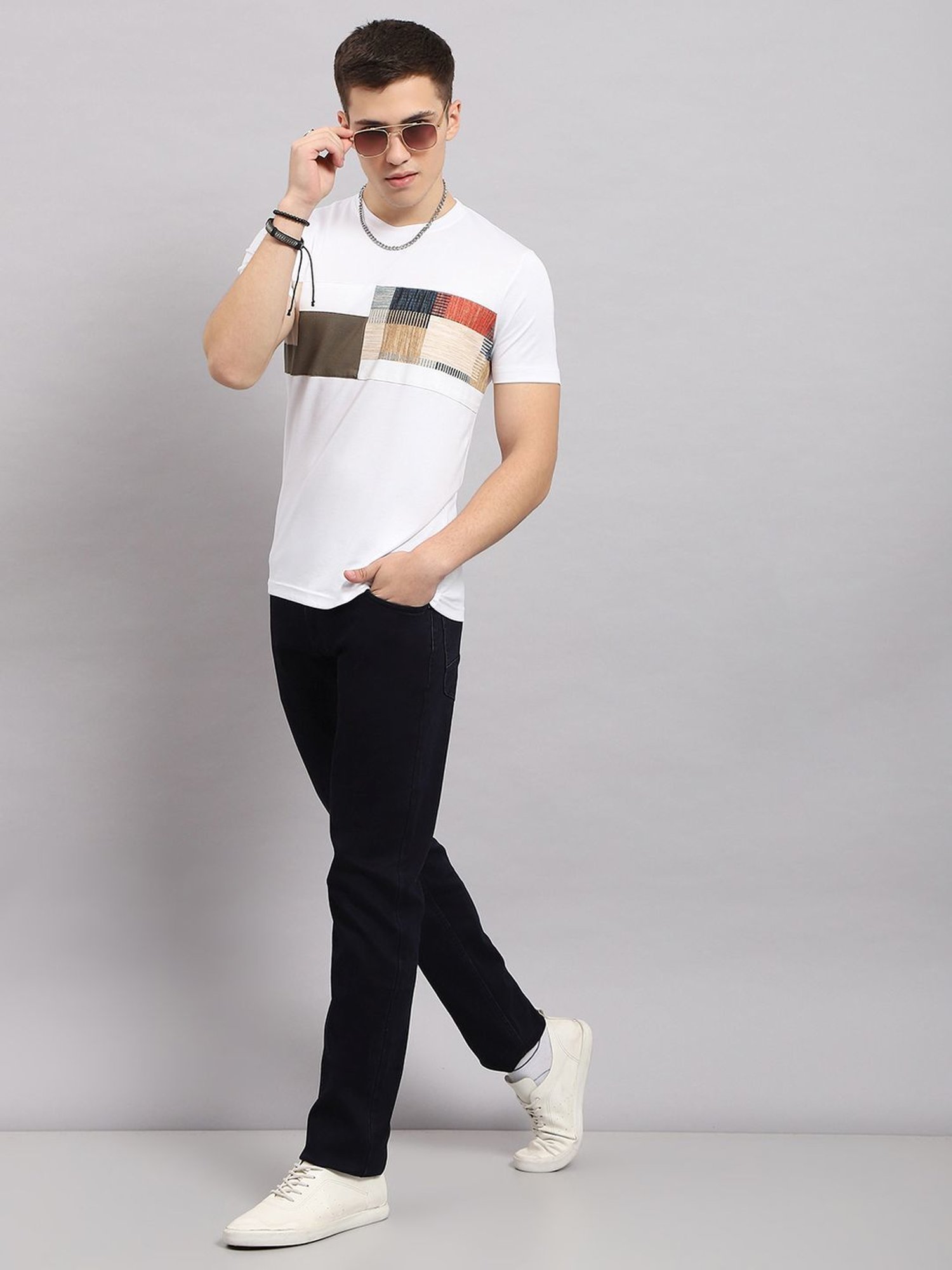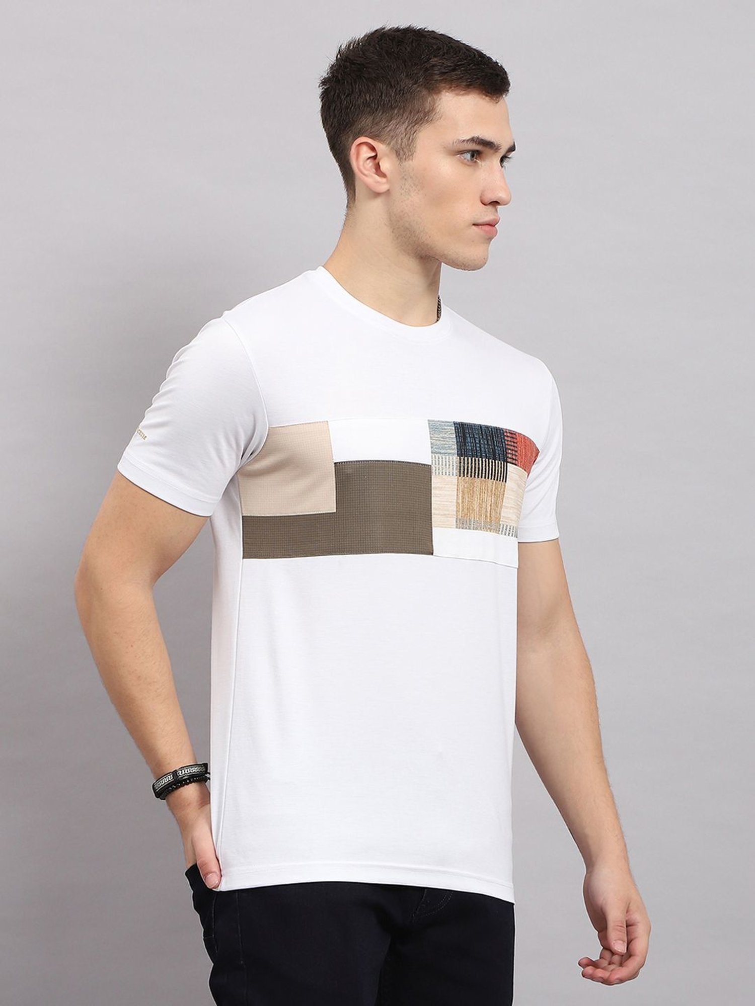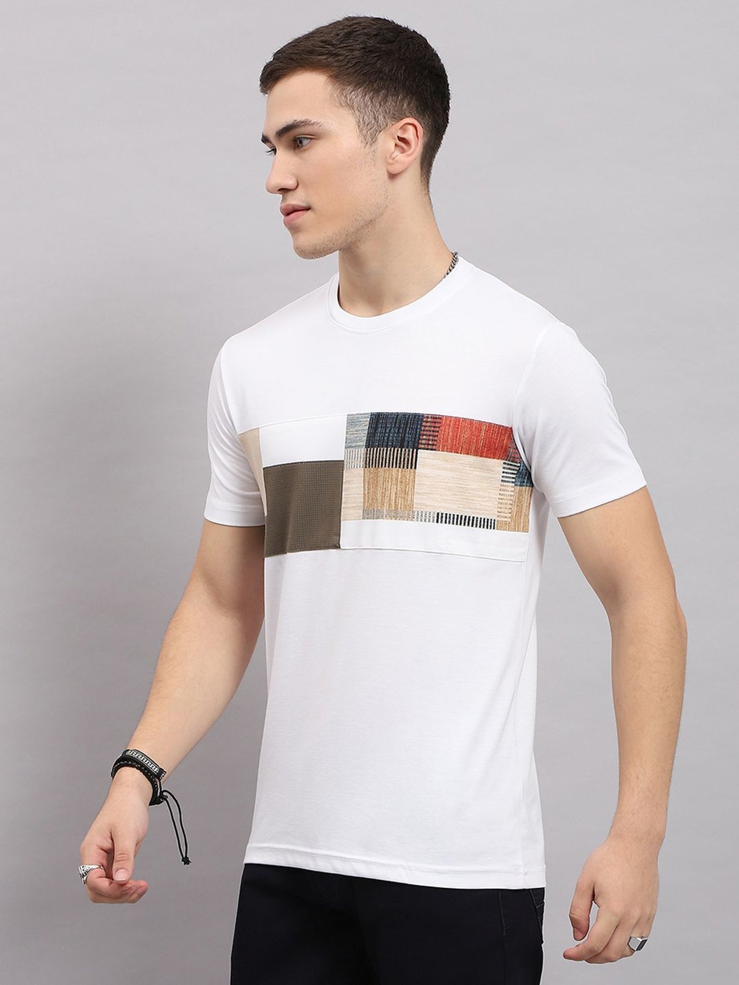 Displaying meticulous craftsmanship, this white regular fit t-shirt from Monte Carlo will revamp your charmed look. Tailored to sartorial perfection from premium quality fabric, it assures a soft and soothing touch against the skin. The round neck adds to its appeal. Exuding short sleeves, it is sure to fetch you compliments from all. The printed pattern makes it a captivating choice.