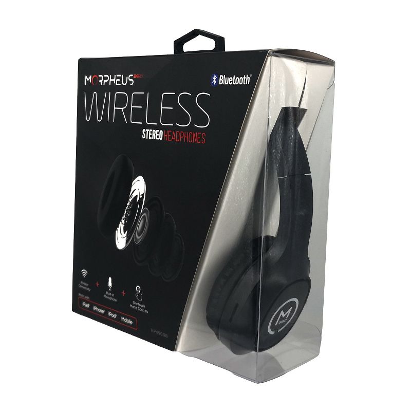 Morpheus 360 Wireless Stereo Bluetooth Headphones Over-The-Ear, Quality Stereo Sound, One-Touch Media Controls, Track Forward / Back, Volume Up / Down, Answer or Make Calls, Built-in Microphone, USB to Micro Charging Cable. Play Time Up to 8 hours, Charging time 2-3 hours. Works as a Wireless Headphone or as a Wired Headphone, perfect to use on Airplanes, PC / MAC or legacy devices with a 3.5 mm Jack.