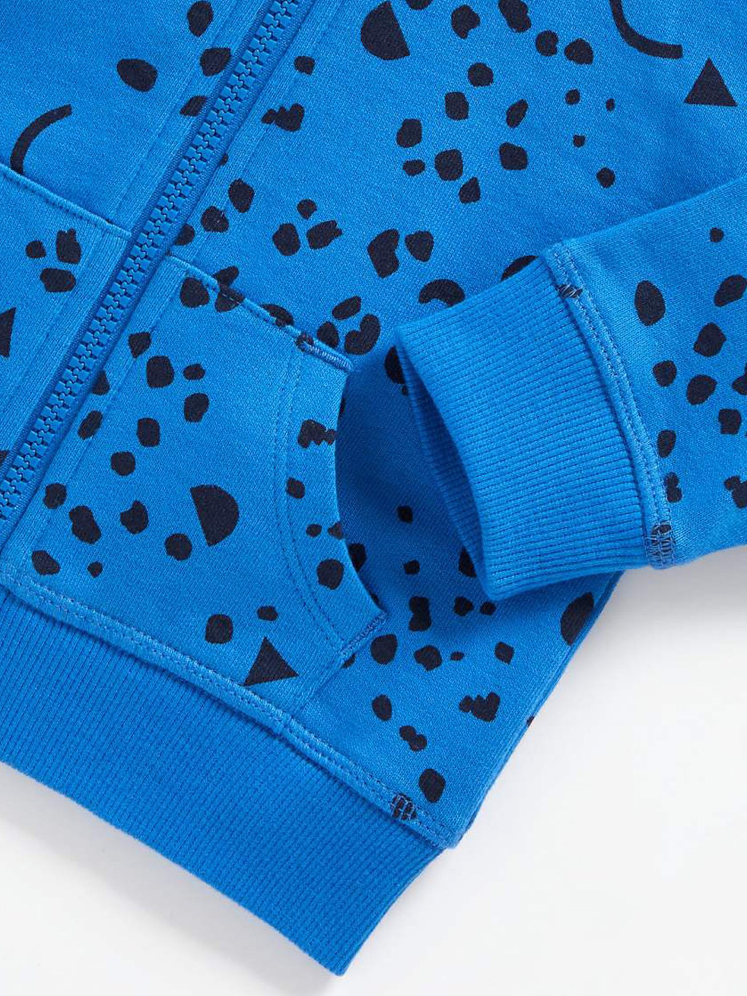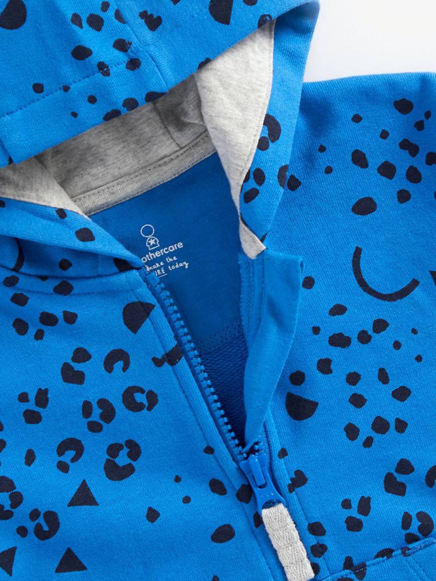 Build your little boy's wardrobe with this blue hooded sweatshirt from Mothercare Kids. Tailored to sartorial perfection from cotton fabric, it assures a soft and soothing touch against the skin. Exuding full sleeves, it is sure to fetch your boy compliments from all. The printed pattern makes it a captivating choice. Your prince can team it with a pair of sunglasses for a stylish look.