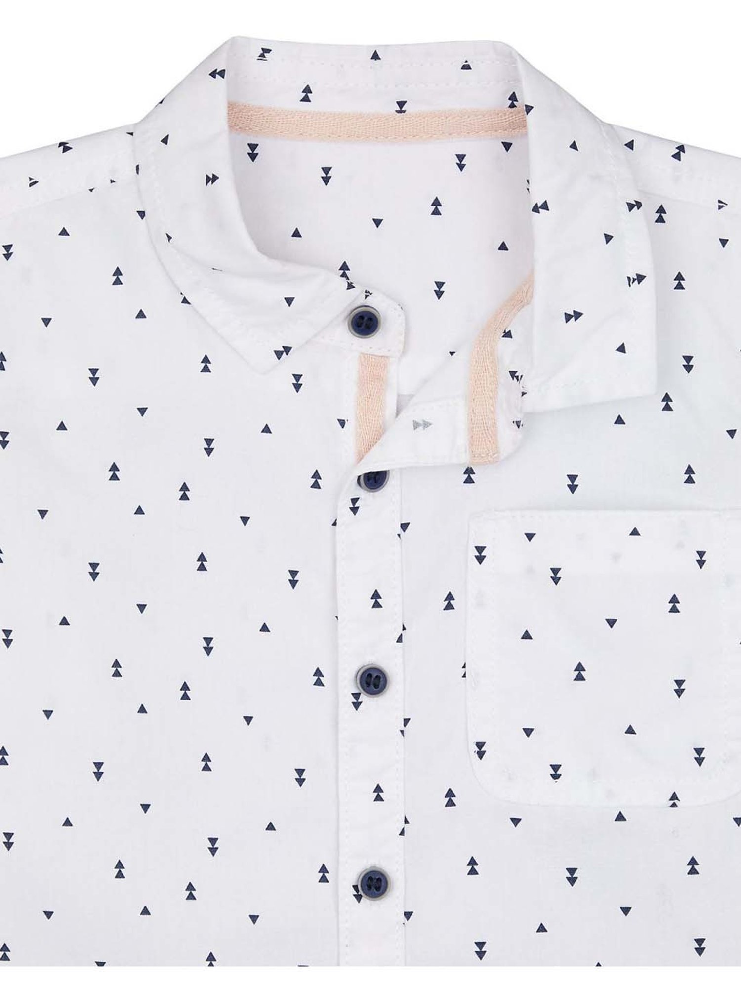 Revamp your little kid's wardrobe with this white shirt from Mothercare Kids. Crafted with care using premium quality cotton fabric, it will be very soft to the skin. The collared neckline elevates its design. Exuding full sleeves, it is sure to fetch your kid compliments from all. The printed pattern makes it a captivating choice.