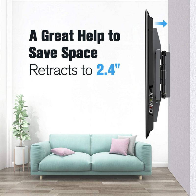With articulating arm, this mount retracts to 3.1"(to wall) to save space, and extends up to 15.9" from the wall.