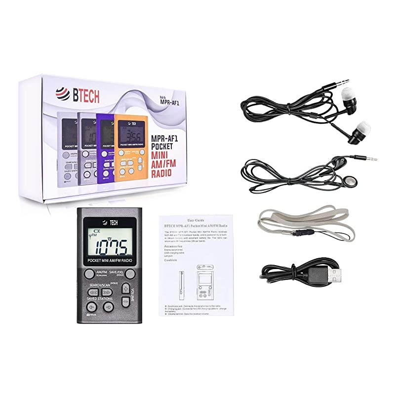 Kit Includes: MPR-AF1 Radio 2 Different Headphones Lanyard USB Charging Cable Easy-to-read Manual (written in the US)