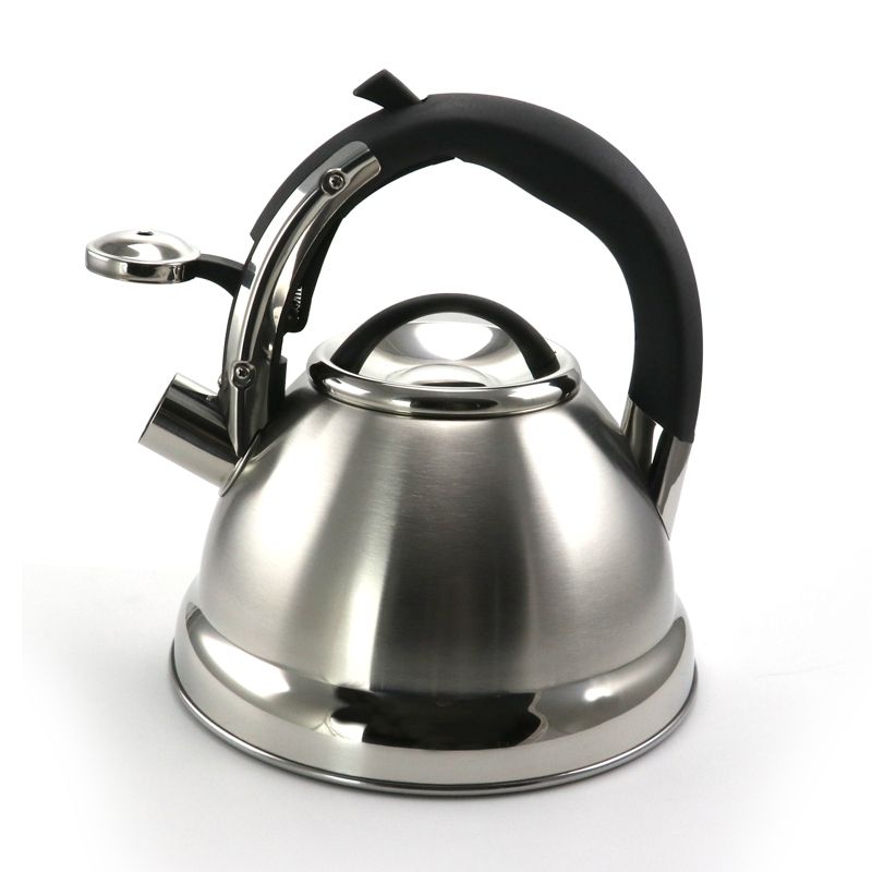 The Mr. Coffee 2 Quart Stainless Steel Whistling Tea Kettle with Nylon Handle has a classic design that will look great in any kitchen. Its flip-up whistling spout cover makes for a safe and easy pour every time. Once the water boils, steam builds up and whistles through the spout to notify you it's ready. The handle allows for easy and safe one handed operation. Made of durable stainless steel from a long trusted name in coffee, this tea kettle is built to last.