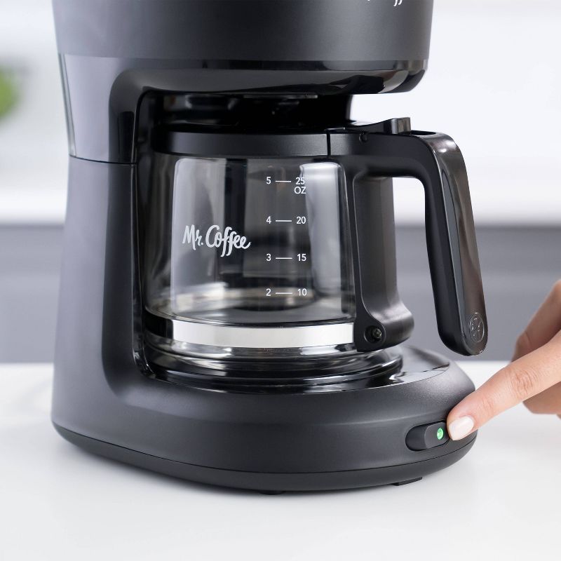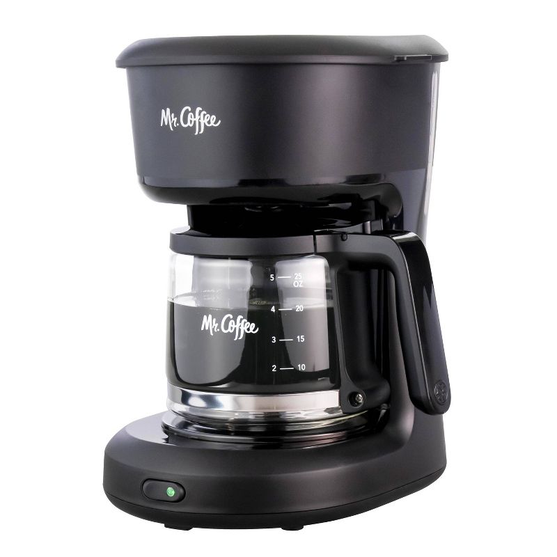 •The Mr. Coffee® 5-Cup Coffee Maker makes up to 25 oz. of coffee—perfect for two 12-oz. cups; easy switch with power indicator lights up to show coffee maker is on, or to remind you to shut it off