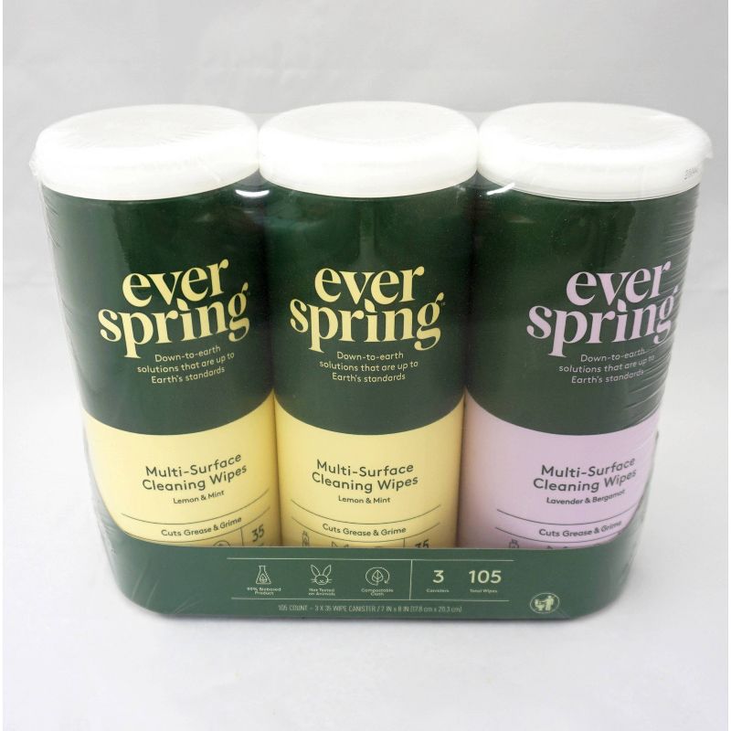 Whether it's routine cleanup or prepping for a special occasion, these Multi-Surface Cleaning Wipes from Everspring™ will help you maintain a clean home. This three-pack of 35-count wipes helps you clean multiple surfaces for a neat look. Featuring a mix of mint, lavender and lemon scents, these wipes create a fresh, soothing vibe.