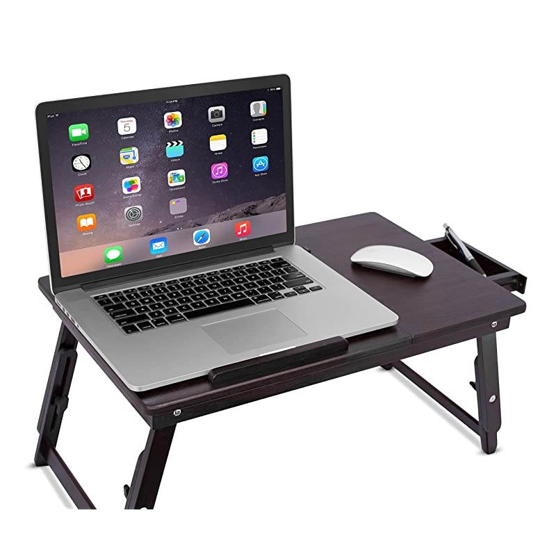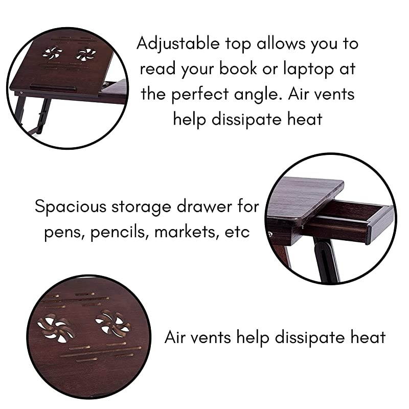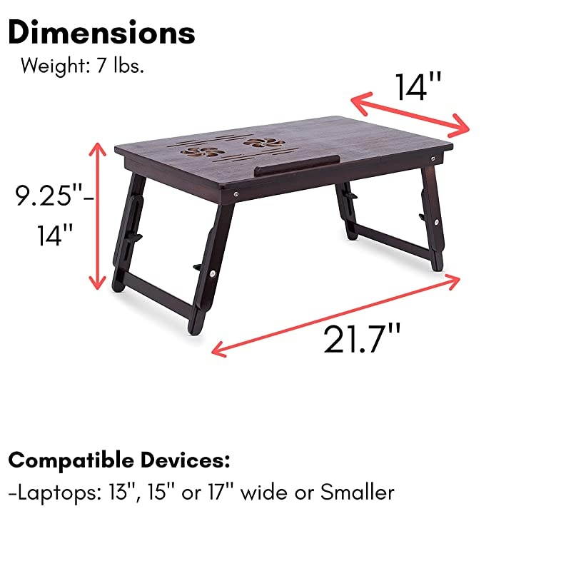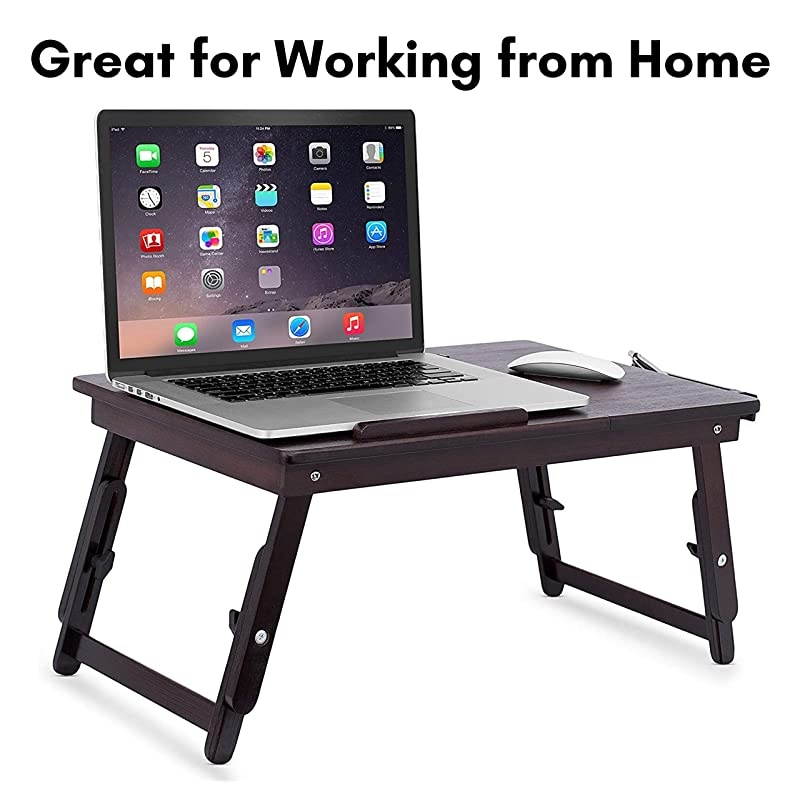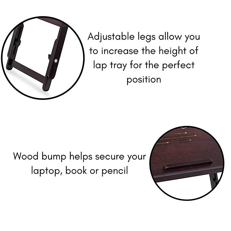 Color: Walnut Flower Laptop Lap Tray with Adjustable Legs is the perfect lap desk for your home, office, or hotel. Crafted from 100% bamboo wood, this laptop lap tray provides a stylish and elegant touch to your home, office or hotel. Built with a sturdy and durable construction, feel safe using your laptop, iPad, tablet, books, drawing canvas, snacks, food and more on the tray. The lap tray is equipped with adjustable legs allowing you to set the bamboo laptop lap tray at the perfect height. The tray table is also equipped with 5 separate tilting positions providing you with comfortable positions to prop up your tablet, book or laptop. The lap desk bed tray has been designed with a magnetic side drawer for storing pens, sticky note pads, headphones and other office accessories. The lap tray is portable workstation that goes where you go. Simply collapse the lap tray down and easily move it to your next work area. Continue to work in comfort wherever you are with Laptop Lap Tray..