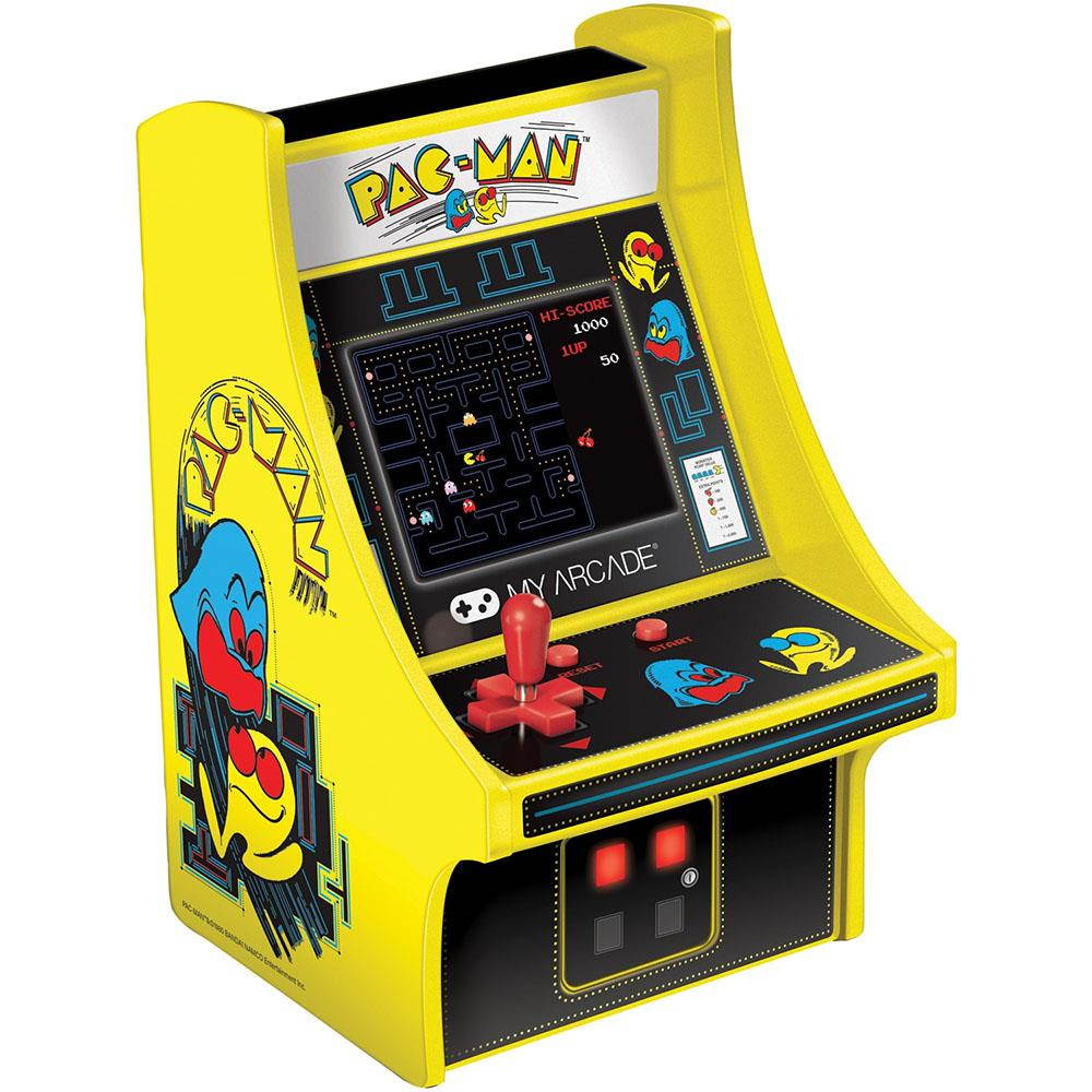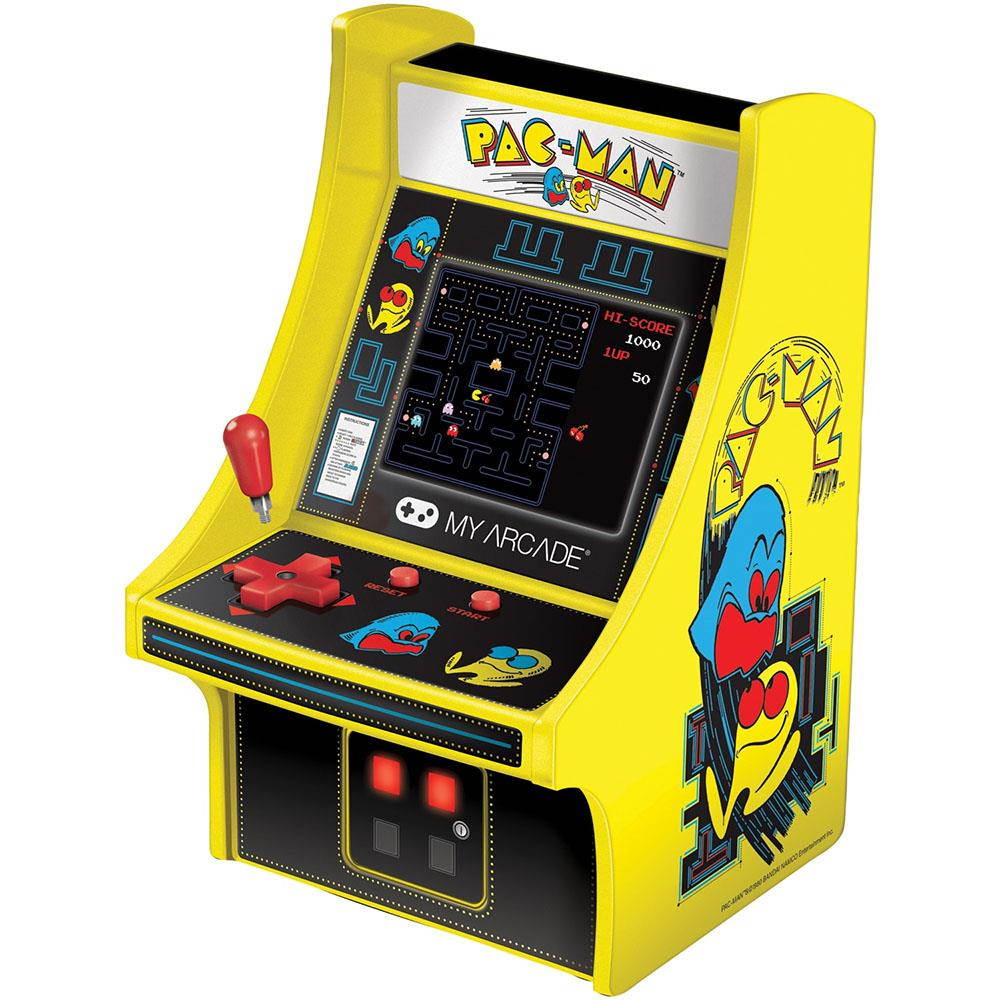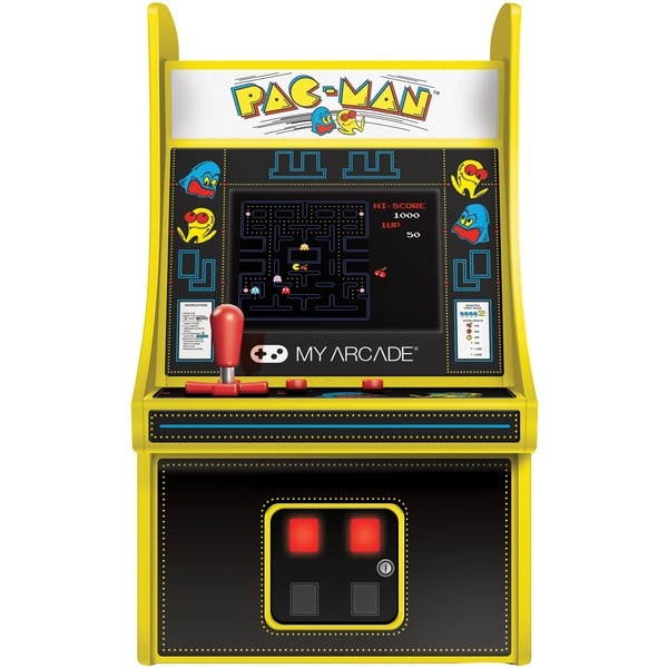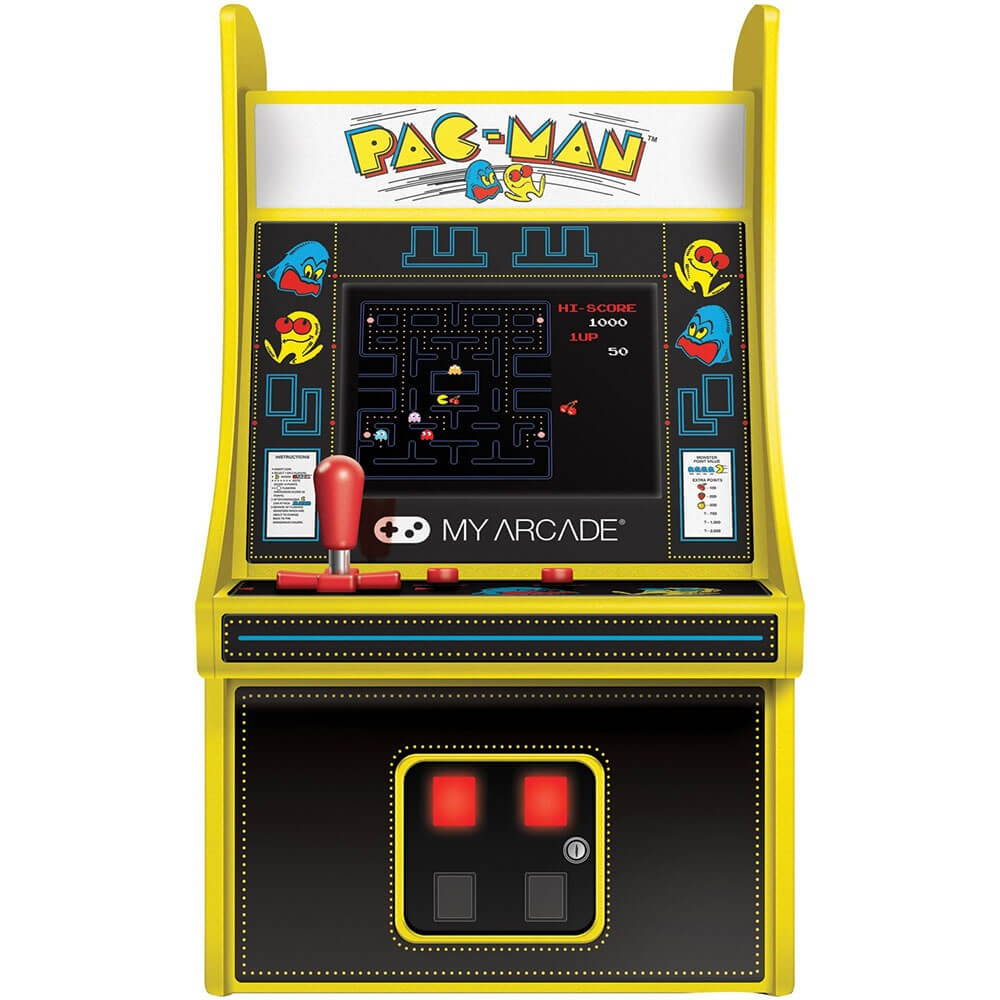 Collect all the Pac-Dots and fruits, but watch out for ghosts! Blinky, Pinky, Inky and Clyde are out to get one of gaming’s most iconic characters, PAC-MAN™. Originally released in 1980, PAC-MAN™ is often regarded as one of the most famous arcade games and is still a staple in arcades across the world. Features artwork inspired by the original PAC-MAN™ arcade cabinet. Full color, 2.75” screen. Removable joystick. 6.75 inches tall. Volume control and 3.5mm headphone jack.Perfect for any game room, office, or display case! Power with a Micro-USB cable or 4 AA batteries (not included) |