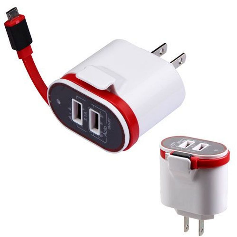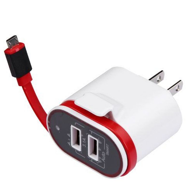 Micro USB Travel Charger with Dual USB Ports(3.1A), White