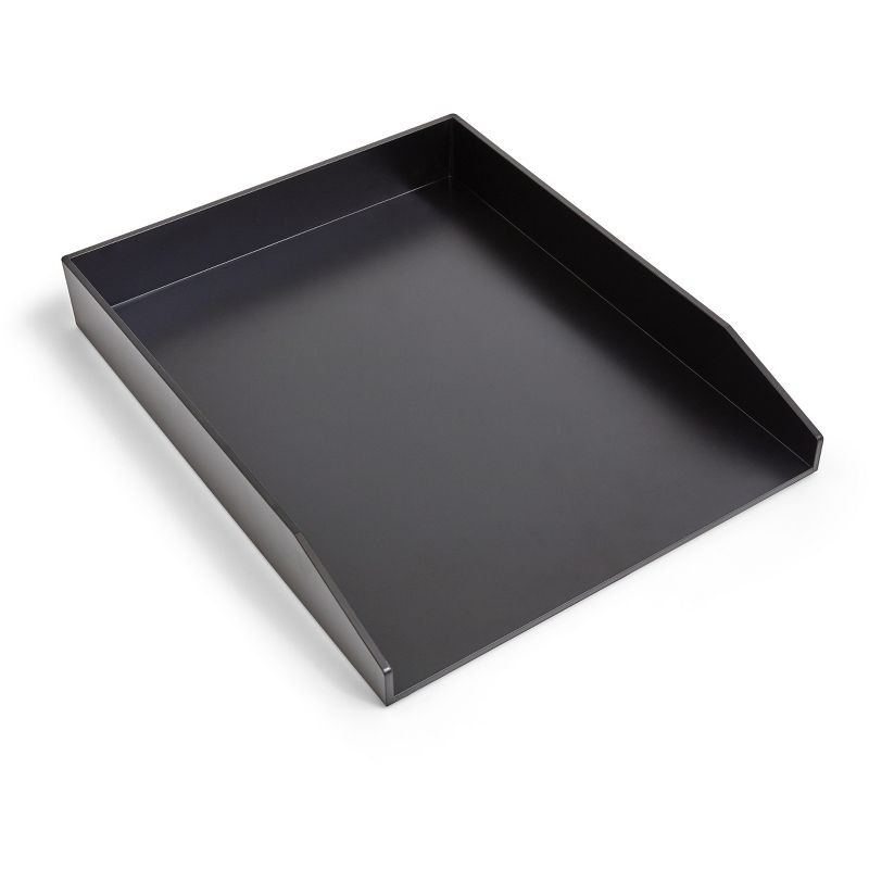 • Black matte finish plastic letter tray holds up to 200 sheets without bowing. Use stand alone or mix and match with other pieces.