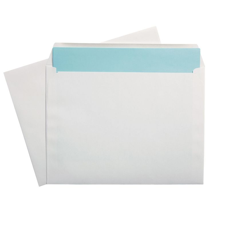 • Booklet envelopes keep your documents flat in the mail. Envelope size: 9"H x 12"W. Gummed flap closure keeps your documents secured inside the envelope. Envelopes have square flap. Made of white wove paper. 100 envelopes per box.