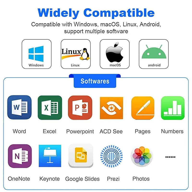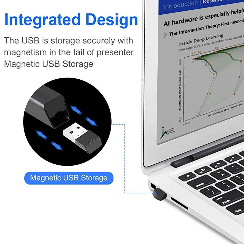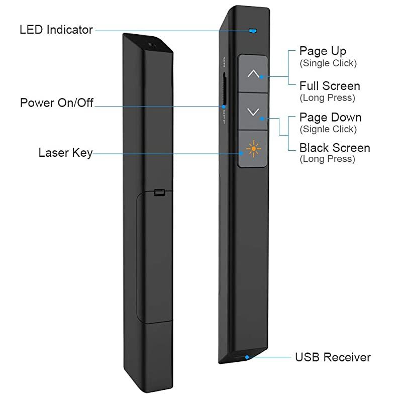 light range: 200M/656FT. Power point presentation clickers produces a bright red light that's easy to see against most background. (NOT recommended for LED/LCD/TV screen). *****Pointer Presenter FeaturesSlide Clicker is easy to use, Only Plug & Play. Bumped-buttons offers a clear signal to help you perceive the key orientation without thinking. One ppt clicker can operate countless computers (need to purchase additional USB receiver). *****Widely CompatibleClicker for powerpoint presentations supports systems: Windows 2003, XP, Vista, 7, 8, 10, macOS, Linux,