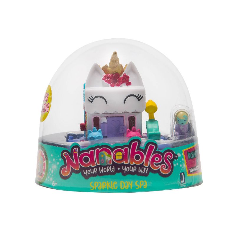 For the latest trends in beauty, there's no better place than Sparkle Day Spa! Nanables learn makeup lessons and tips from head stylist, Suzy Sparkle while her assistant, Cyan, treats Nanables to colorful new hairstyles! For the finishing touch? Magic sparkles—guaranteed to make all the Nanables shine!