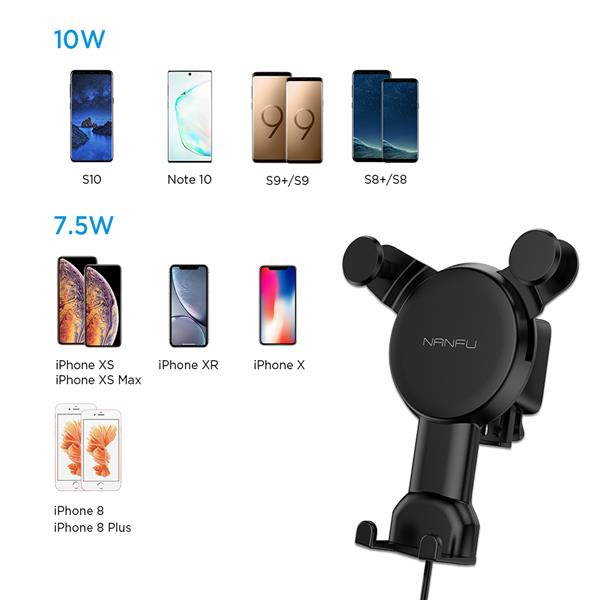 ?Thick Case Friendly & Faster Charging?No need to remove phone case (most of phone cases in the market except rugged, uneven case.)while charging.The car holder can hold all phones with a width of 60-80mm tightly, which works very well for all QI-enabled phones.Max 10W Fast Charger for Samsung S10/S9/S8/S7/S6 Edge /Note 5, Max 7.5W Fast Charger for iPhone XS max/XS/XR/X/8, 5W for Other Qi-Enabled Phones.For 10W, 7.5W fast charging mode,QC 3.0 car charger adapter is required as its power source.