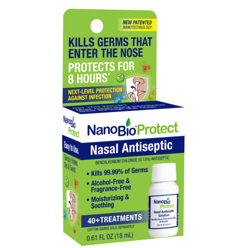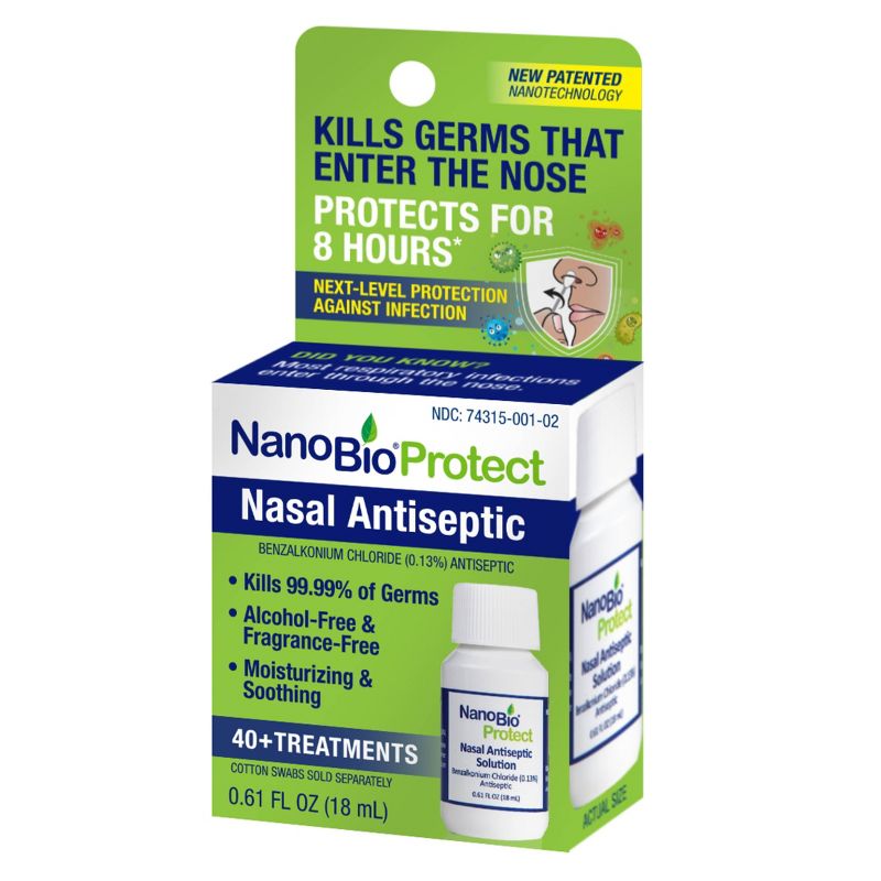 Most respiratory germs enter the body through the nose. Germs can come from airborne droplets or from touching an infected surface and then touching the skin in or around your nose. Nasal antiseptics can help keep you safe by eliminating germs before they cause infection. NanoBio Protect Nasal Antiseptic is a powerful new solution that can help protect your nose from infection-causing germs all day.