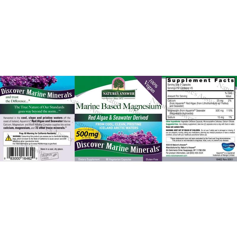 Nature’s Answer Plant Based Magnesium Capsules are derived from red algae that naturally grows in pristine Iceland Arctic waters. Magnesium is a vital mineral that plays a role in multiple processes in the human body, including muscle function, bone development and vision health. *