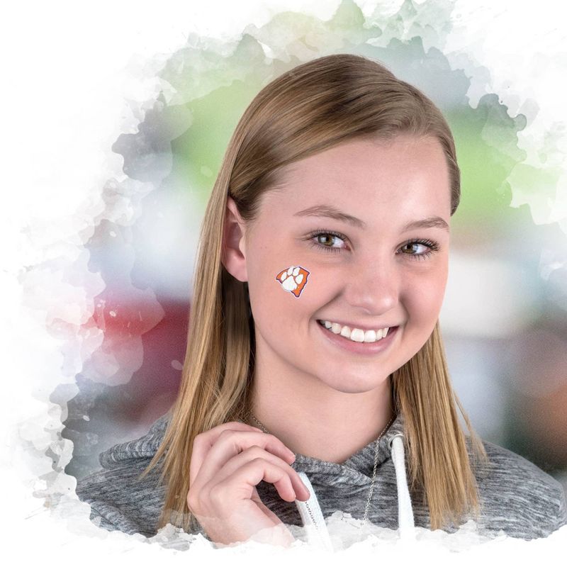 Show your school pride while wearing Face-Cals. This tattoo alternative features an EZ Peel & stick medical tape adhesive so no water is needed for application. The next time you are cheering on your favorite team, be sure to show off your team pride. These make great stocking stuffers for adults or children!