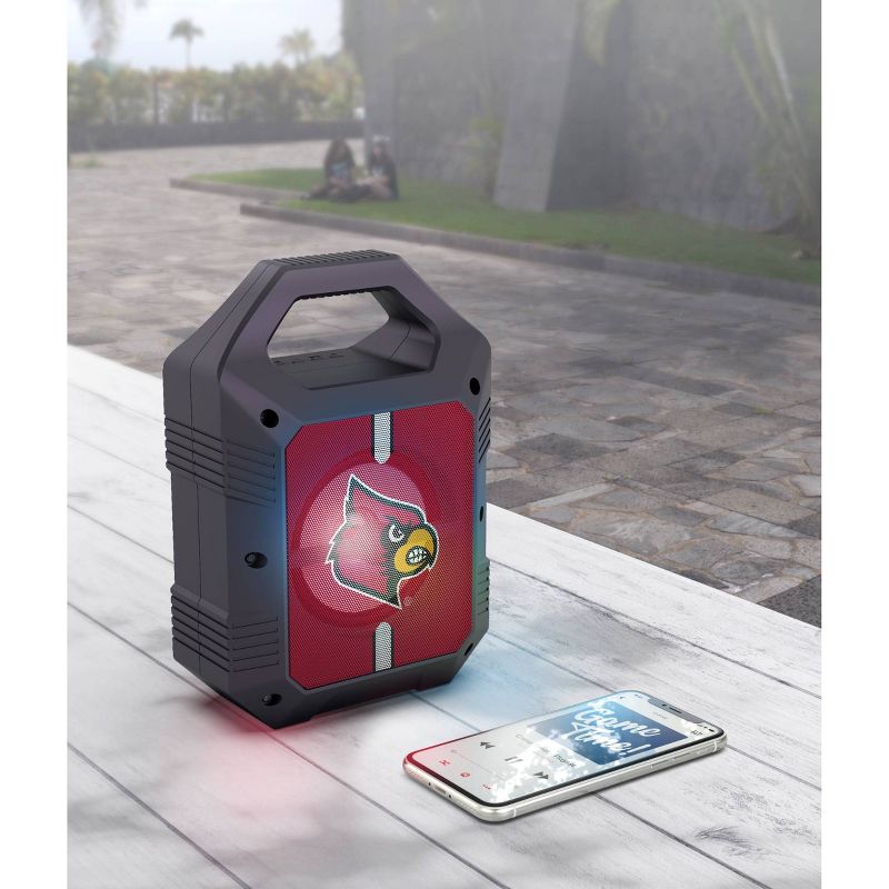 Engineered for use on the go or at home, this lightweight speaker features a top handle for ultimate portability. Volume and track controls are at your finger tips as well as 5 listening modes. Listen to the game with the included FM radio or pair two speakers up for a full surround-sound experience and show off your team spirit!