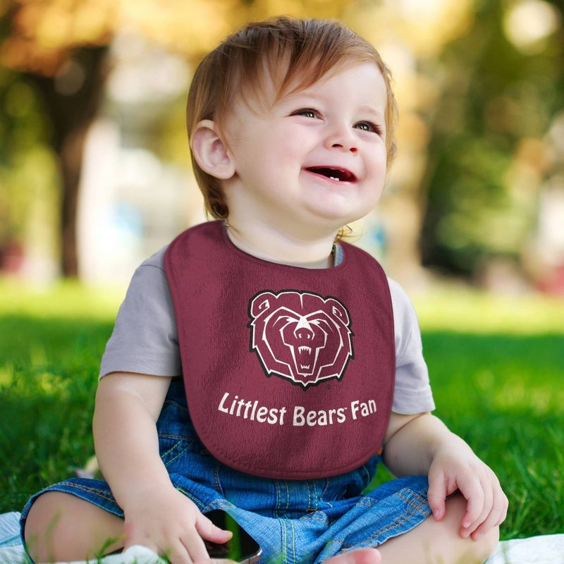 This baby bib has a soft terry polyester front and absorbent cotton terry back. It is decorated with a fun full color imprint. It is finished with an adjustable baby soft hook and loop attachment backing. Officially licensed product so your baby can show their team spirit at an early age. Printed in the USA with imported fabric.