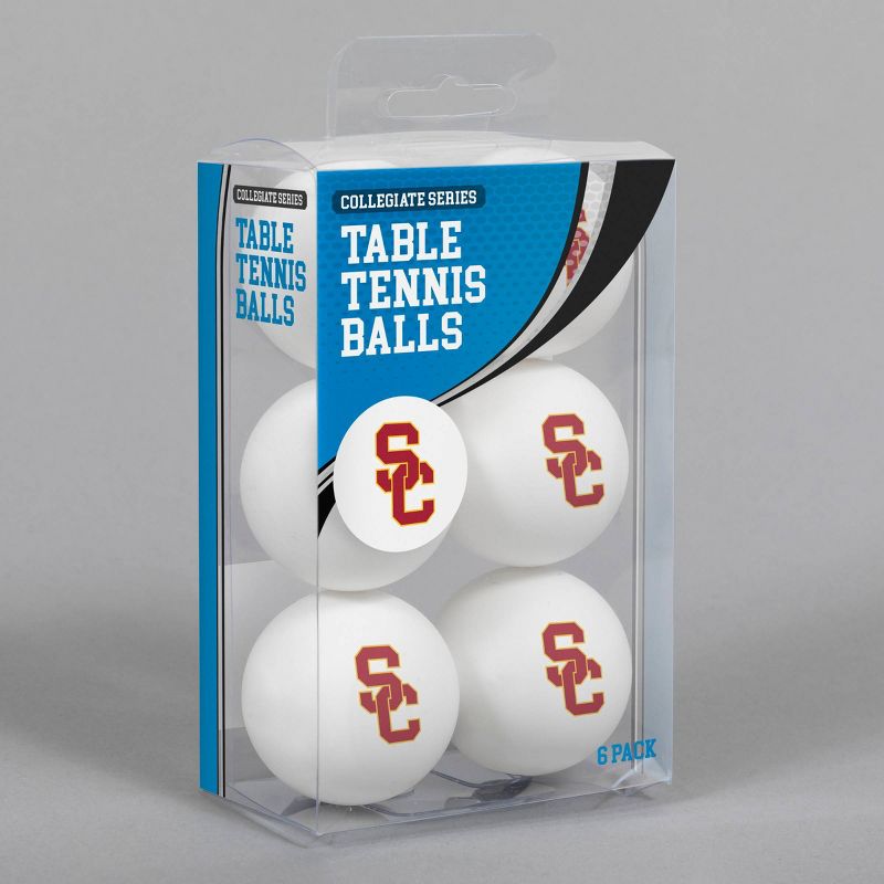 Take your table tennis game to the next level with the USC Trojans Table Tennis Balls! This set includes six, 1-star rated table tennis balls. The balls are official size and ready for tournament play. In addition to being high in quality, these balls are officially licensed. Fans of the USC Trojans will love the classic logo that puts their school pride on display! Pair the balls with your favorite table tennis table and paddles for the ultimate game experience. Support your team all year around with the USC Trojans Table Tennis Balls!