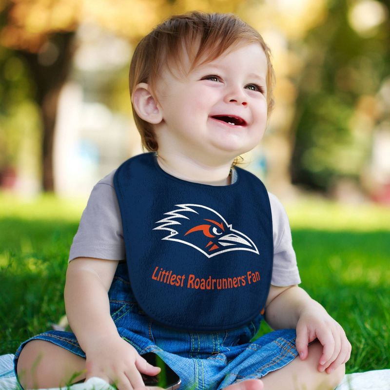 This baby bib has a soft terry polyester front and absorbent cotton terry back. It is decorated with a fun full color imprint. It is finished with an adjustable baby soft hook and loop attachment backing. Officially licensed product so your baby can show their team spirit at an early age. Printed in the USA with imported fabric.
