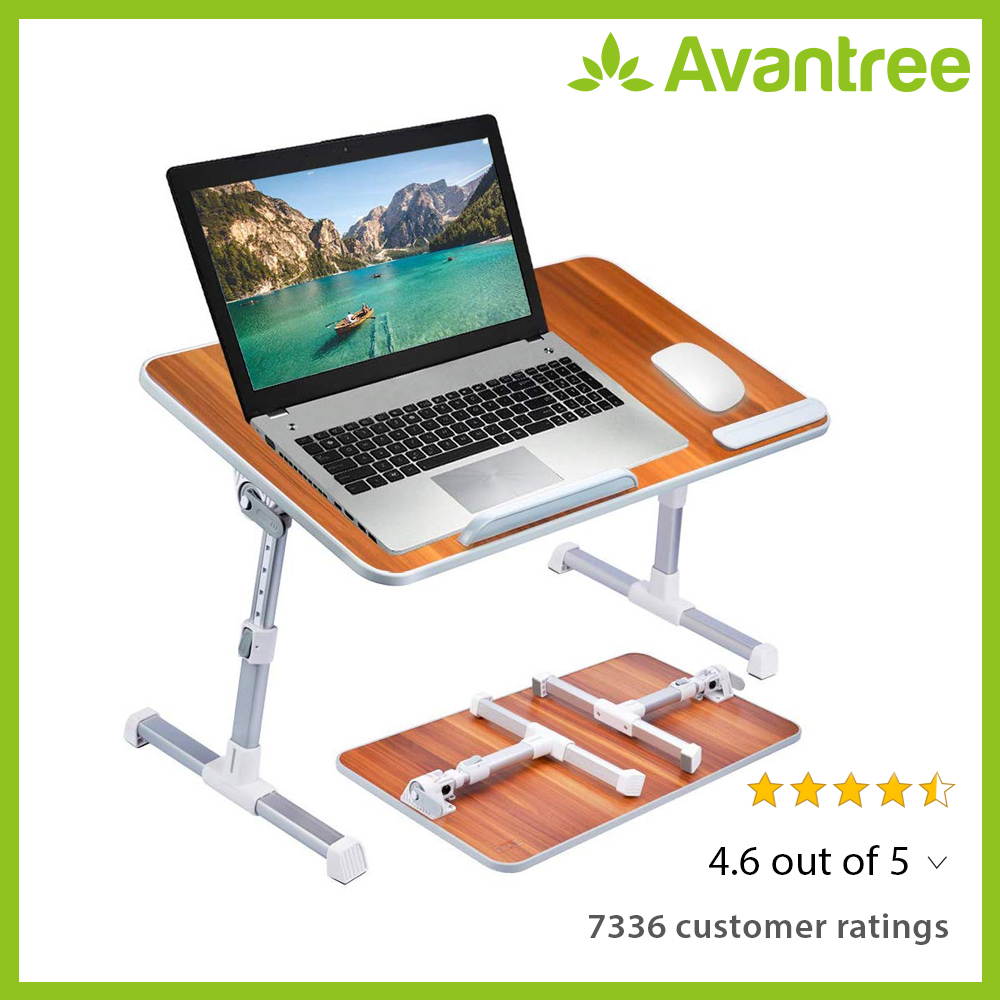 * The laptop desk can fold flat and is light enough to carry around, which makes it portable and perfect for travelling.